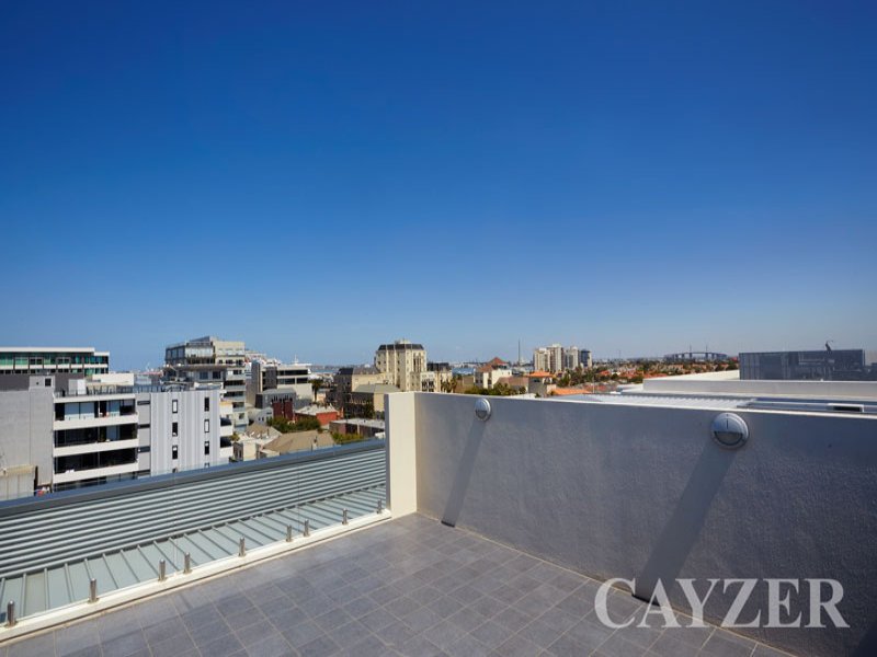 Exceptional luxury penthouse showcasing the very best in today's living with a stylish vogue presentation ensuring an enviable lifestyle. Situated on the 6th floor of the sun-filled 'Tjngari' boutique development, complemented by a fabulous corner location enjoying the bay and Dockland views. Comprising: Security entrance, huge main bedroom with north-facing private terrace and full ensuite bathroom, a further two large bedrooms (one with ensuite and balcony) and study/fourth bedroom. Impressive open living room with access to front balcony with views of Port Phillip Bay, separate elegant dining area with feature gas fireplace, fully equipped gourmet kitchen with Miele appliances and stone bench tops, a separate laundry, temperature controlled wine cellar room and private rooftop terrace ideal for alfresco entertaining. Features: Uncompromising fixtures and fittings throughout, central heating and cooling, beautiful Blackbutt timber flooring, two secure car spaces, separate lock-up store room and low Body Corporate fees. Easy walking distance to popular Bay Street Shopping precinct, cafe life and CBD transport. Ideal for those downsizing and looking for a relaxed bayside lifestyle. 175sqm (approx.).