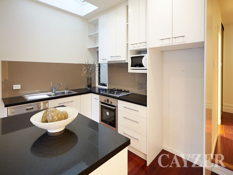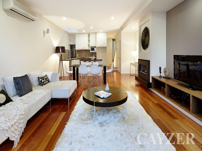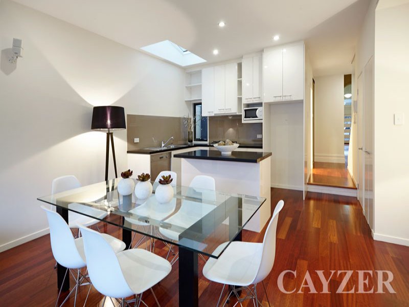 Beautifully presented three bedroom residence only one block to Albert Park beach and 50 metres to Victoria Avenue. Comprising: Two excellent double bedrooms (each with built-in robes), large central bathroom with Euro laundry, well-equipped modern kitchen and sun-filled open plan living/dining area opening to large courtyard and deck, ideal for entertaining. Upstairs: Main bedroom complete with built-in robes, ensuite and private north-facing balcony. Features: Heating/cooling and roof storage. Position opposite a children's playground and just a short stroll to the beach, public transport, shops and restaurants.