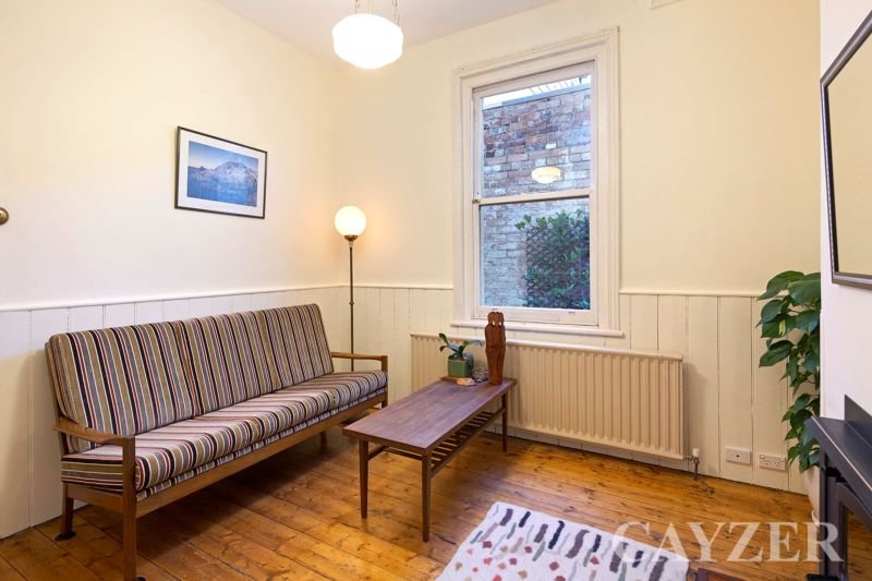 This wider than usual character filled Victorian terrace in a premier Albert Park location has a host of wonderful period features. With just two owners over the last 47 years, some very unique features have been preserved including the original coloured plaster finish in the hallway and front bedroom. Comprising: Two double bedrooms with spacious central bathroom opening to light-well, with a concealed laundry. Central living room with slow combustion wood fireplace, cute cottage kitchen and sunny courtyard garden with extra wide rear access and potential off street parking. Features: 12-foot ceilings, polished original Baltic pine flooring throughout, ornate ceilings, Hydronic heating and attic storage. Enjoy this fabulous location today whilst you contemplate a renovation/addition if desired.
