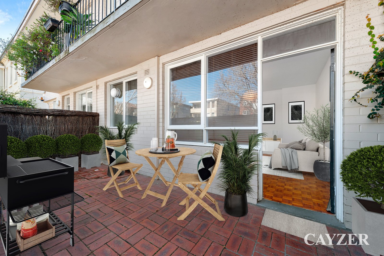 This one-bedroom apartment comprises lounge/dining opening to good size paved courtyard, separate spacious kitchen with gas cooking, central bathroom with shower over bath and laundry facilities. Bedroom with BIR, parquetry floors and one car space.
