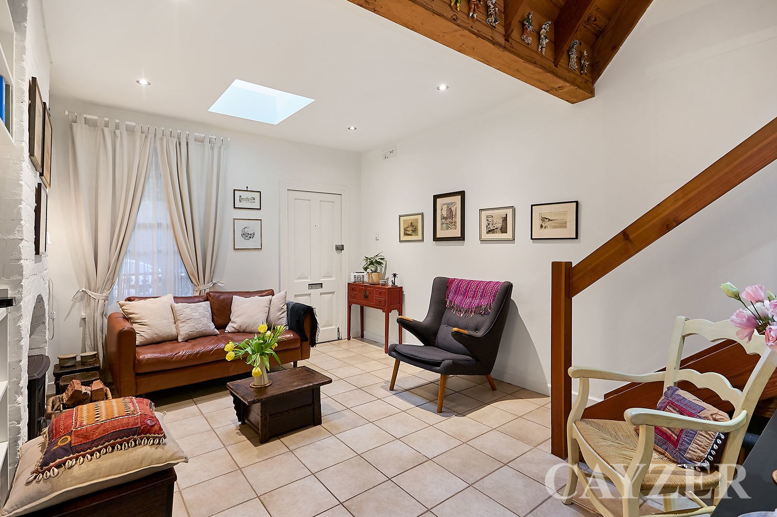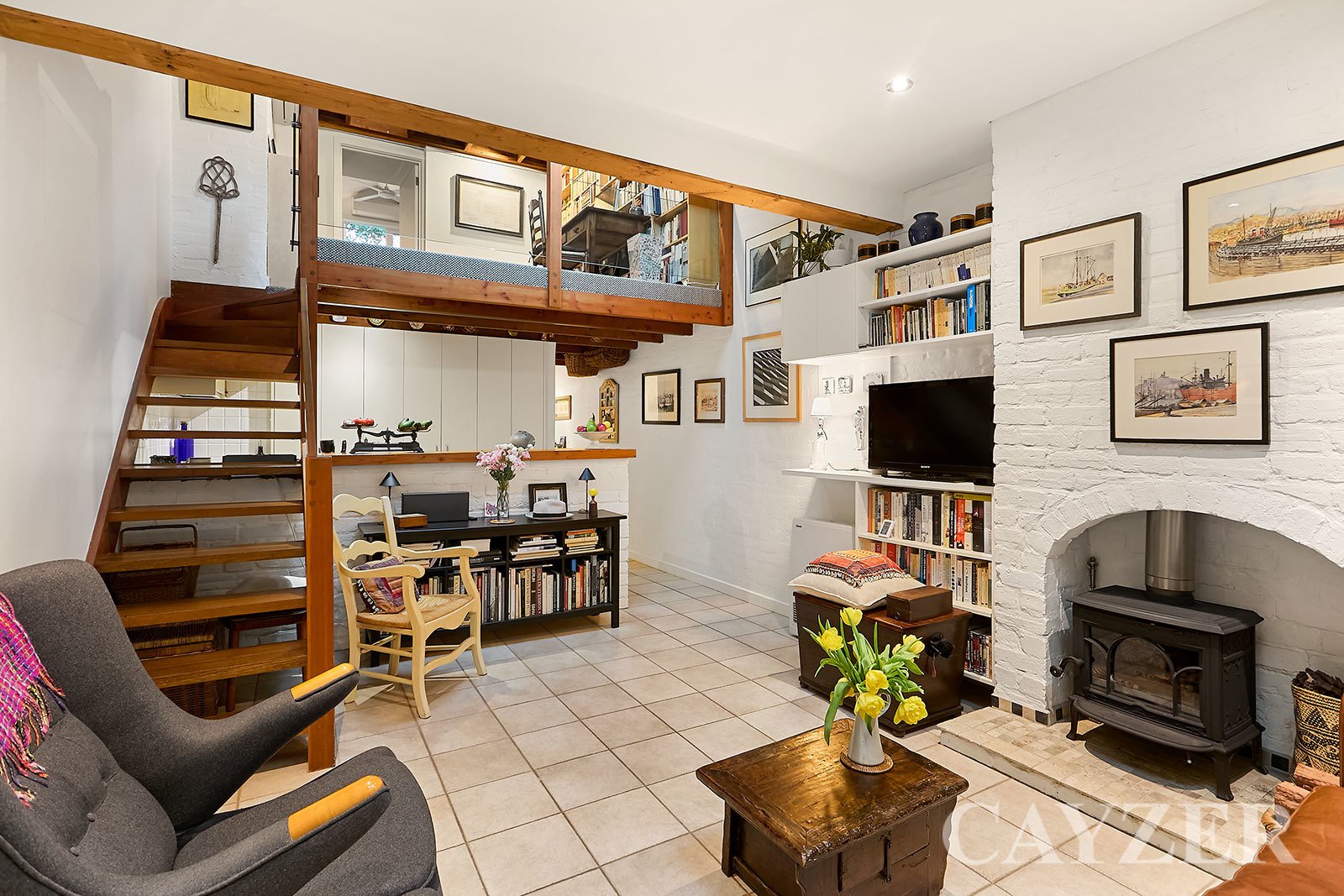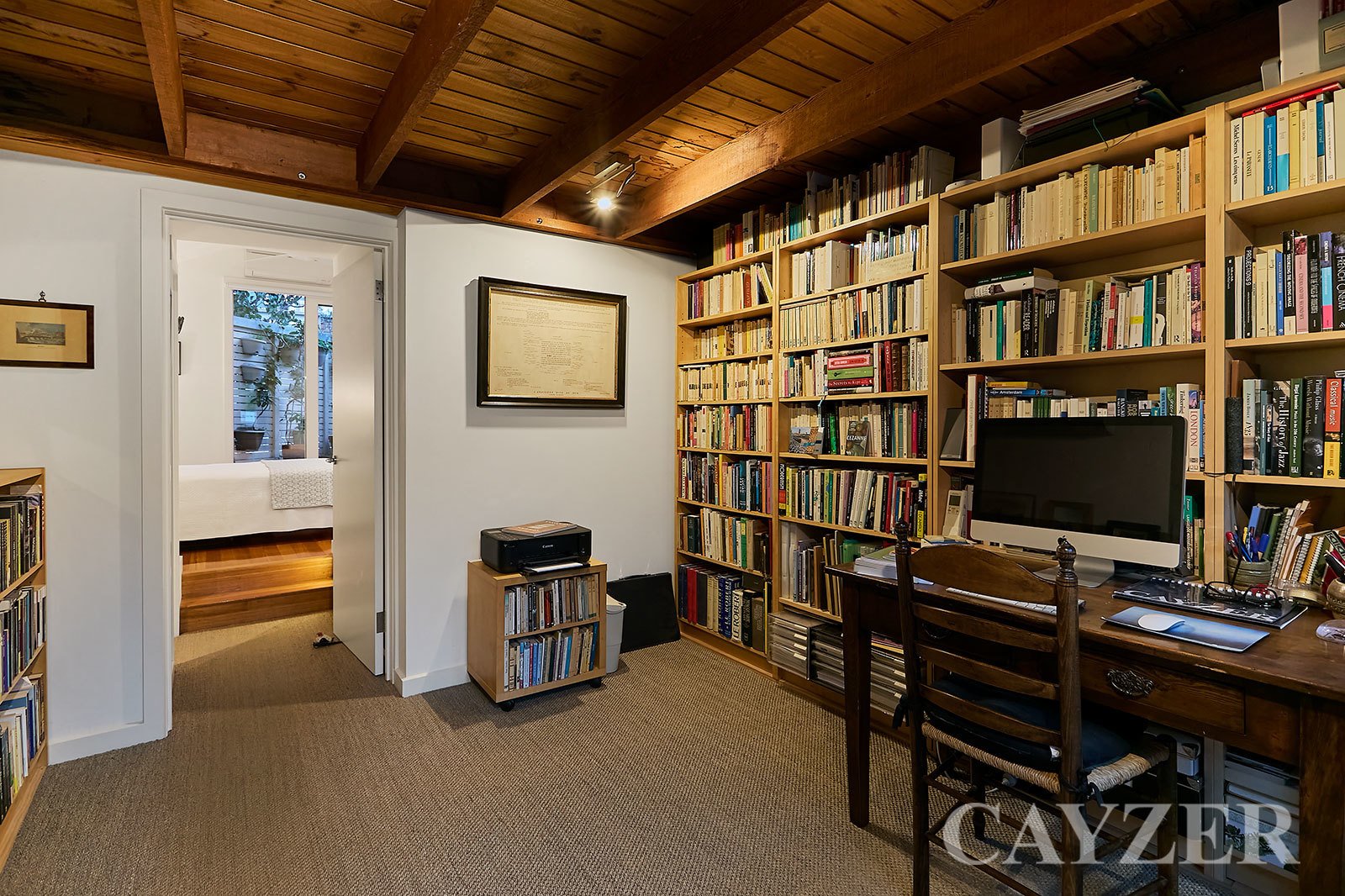 Comprising a cosy living room with a warming wood heater in the brick hearth, overlooked by a clever kitchen (gas cooktop, electric oven& dishwasher). A delightful brick paved courtyard is framed by glazing opening onto the dining room and ground floor bedroom dispersing north light. A large first-floor mezzanine is the perfect home office illuminated by Velux windows. This eclectic residence also features a crisp master bedroom with light pouring in from its own balcony, a sparkling ensuite with tub and a separate WC in addition to a central bathroom and laundry, wine cellar, RC/AC throughout and a gas heater.