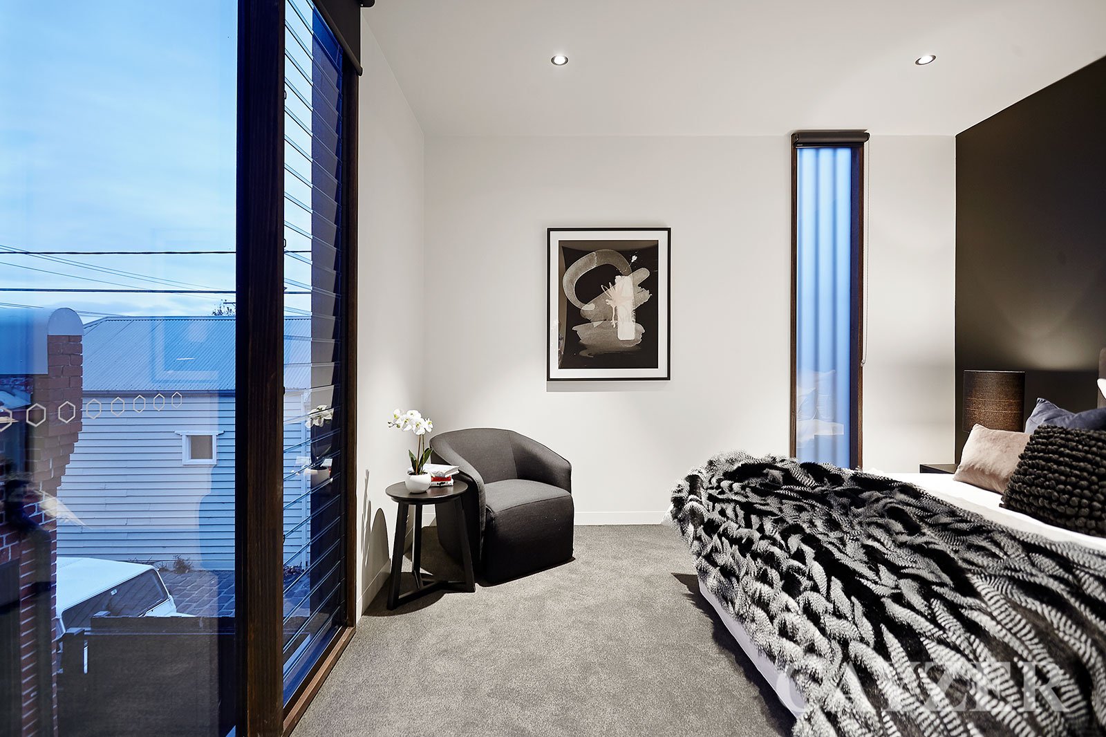 Upstairs: Serene main bedroom with city skyline views, his and hers walk-in robe and ensuite