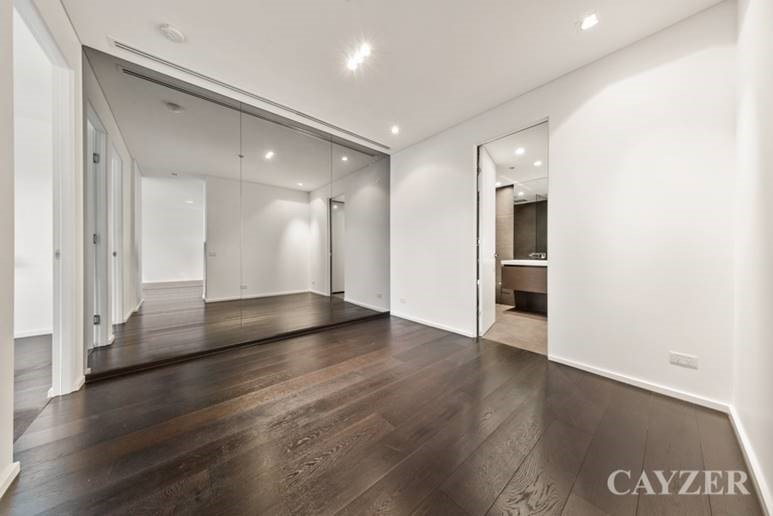 No expense spared for this top floor 2 bedroom/2 bathroom security apartment with north facing views to Docklands and central garden. Comprising secure entry, 2 double bedrooms, main with extensive WIR's and ensuite (walk in double shower, WC, bidet), stunning Italian designer kitchen with fully integrated Liebherr fridge and separate Liebherr wine fridge, Miele steam oven, Miele digital oven, Miele dishwasher, Miele induction cook top, stone bench tops, main bathroom with ceiling shower head plus hand held shower, fully integrated concealed laundry with Asko washing machine + dryer. North facing lounge featuring oak timber flooring, opening to wide balcony (includes stainless steel Beefeater BBQ). Further features include separate dining room/study, fitness centre, sauna, indoor lap pool/spa, reverse cycle heating/cooling, undercover carpark plus a massive lock up storage room. Please note open for inspection times are subject to change without notice.