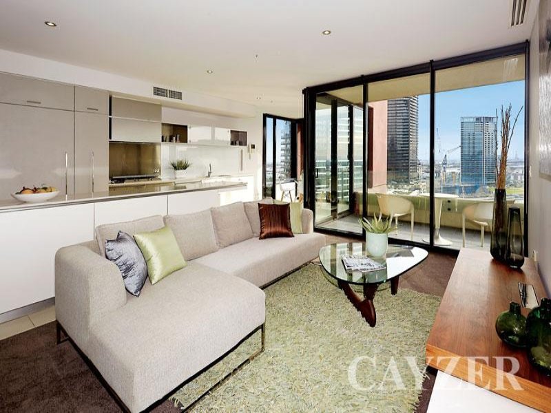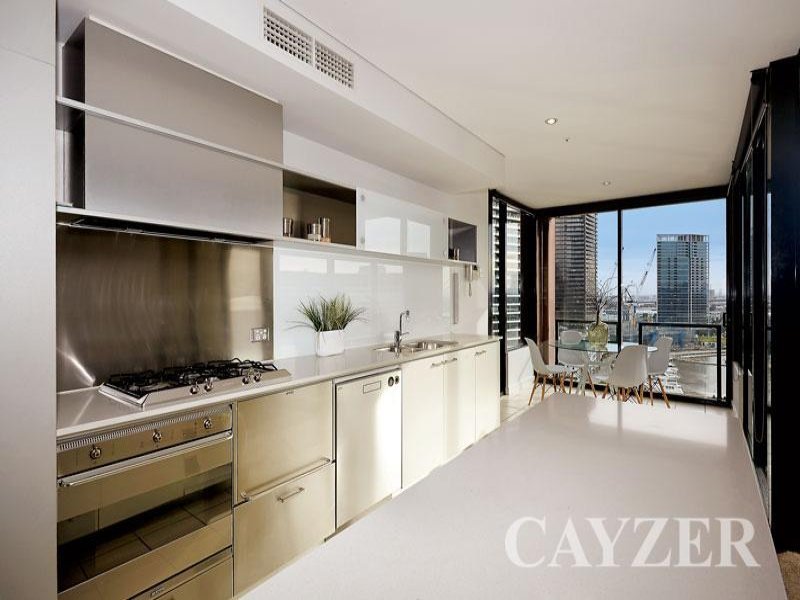 Amazing views across the Yarra River and Bolte Bridge this impressive two bedroom, two bathroom apartment is teeming with sunshine from the 14th floor and offers glorious inner city living. Immaculate presentation and stylish decor comprising: Open plan living and dining areas with balcony terrace, kitchen with meals, hotel style main bedroom (built-in robes & ensuite), second bedroom (built-in robes) and family bathroom (including stone bench tops). Features: Designer Euro appliances, zoned heating/cooling, intercom and two security under cover car spaces with enormous neighbouring storage cage. Magnificent apartment complete with lift access, and use of the REKDEK pool, gym & BBQ facilities.
