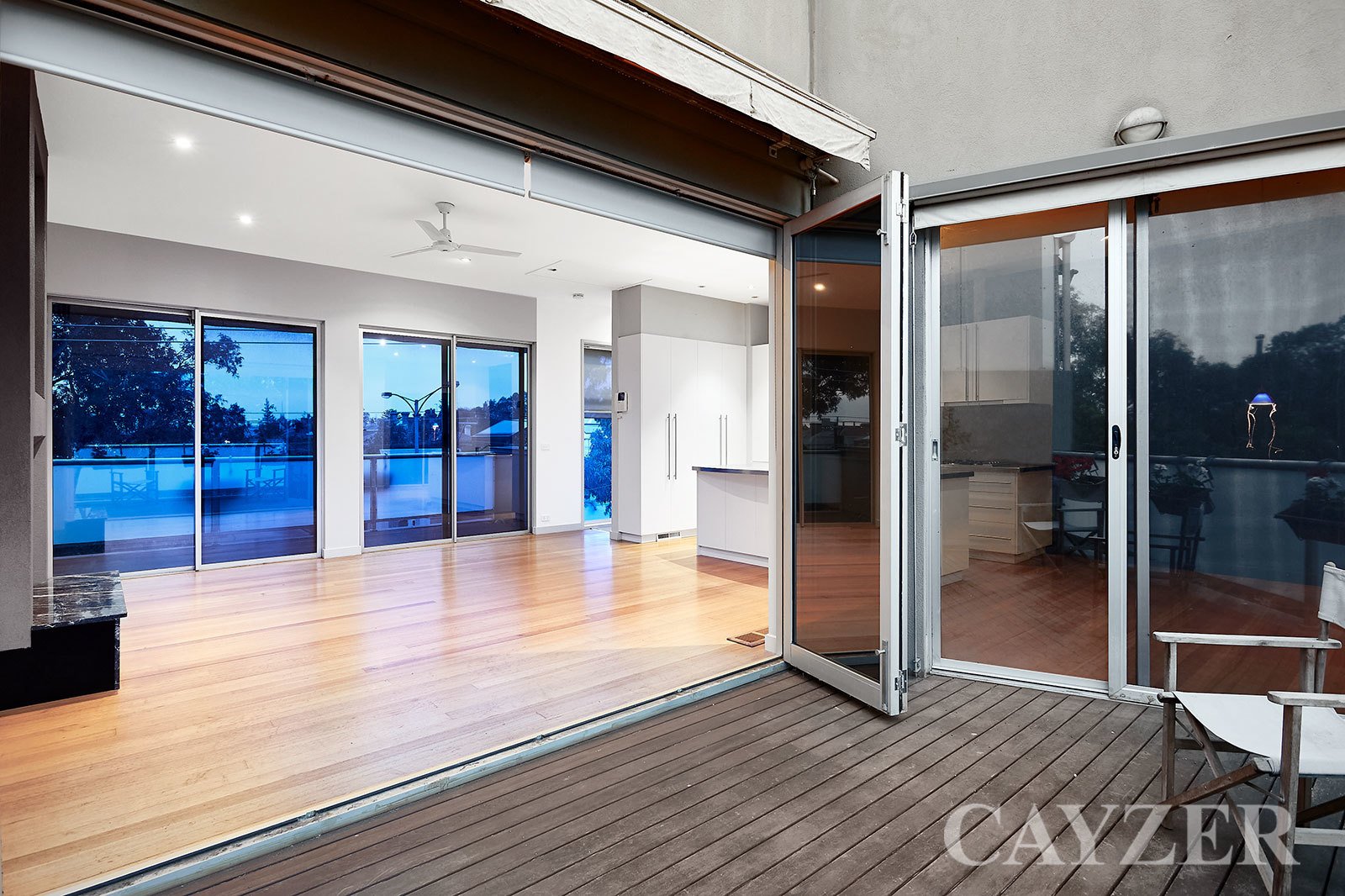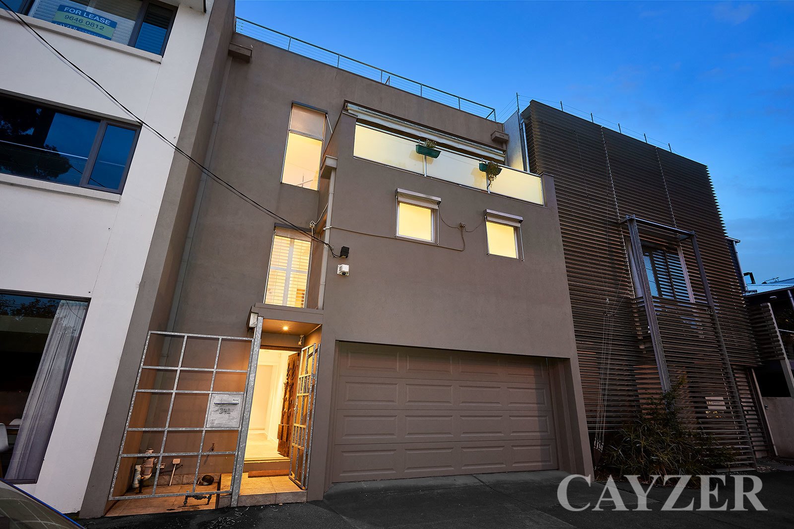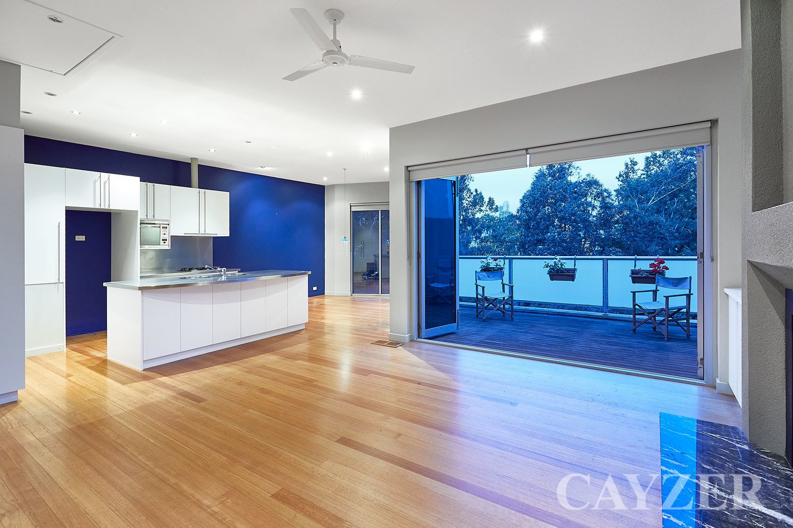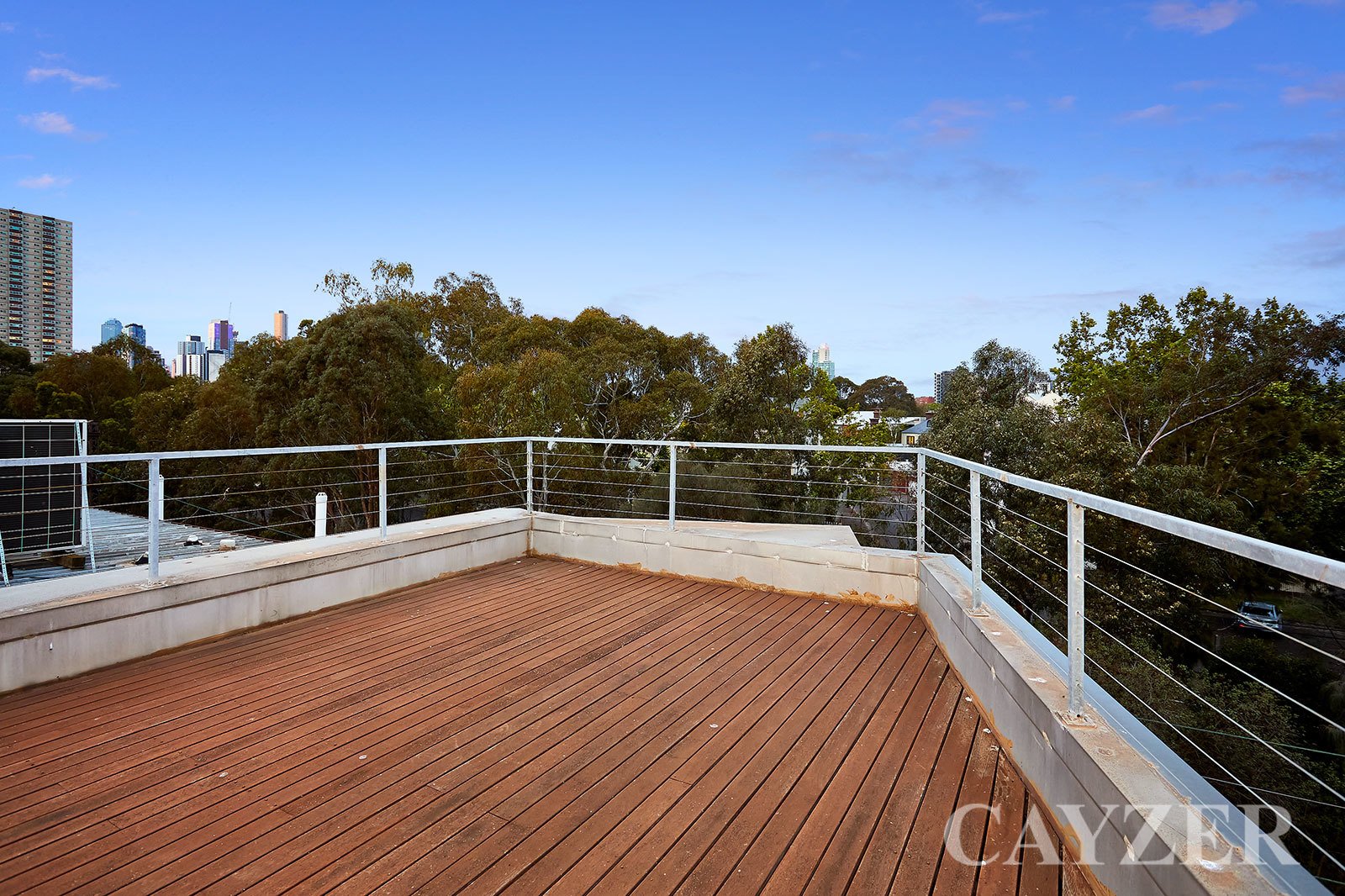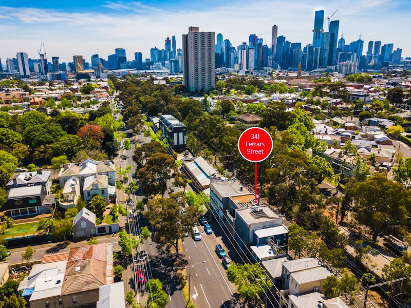 Second Floor: Well-appointed contemporary kitchen with adjacent dining. Expansive light filled living area featuring gas OFP with both North and South facing outdoor terraces with delightful tree-top aspects. Drop down ladder provides access to incredible roof top terrace with 360 degree panoramic views from Albert Park to the CBD.