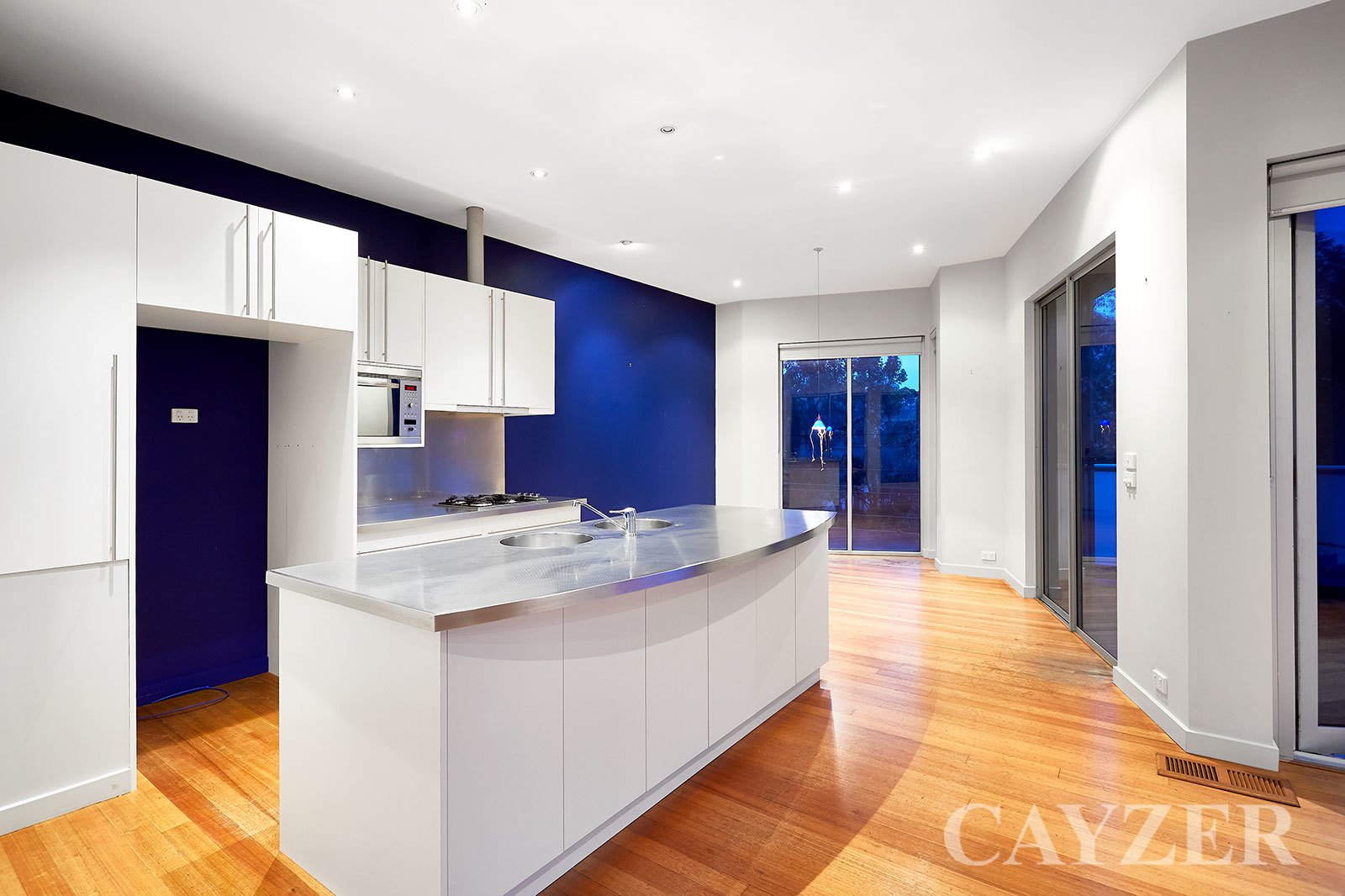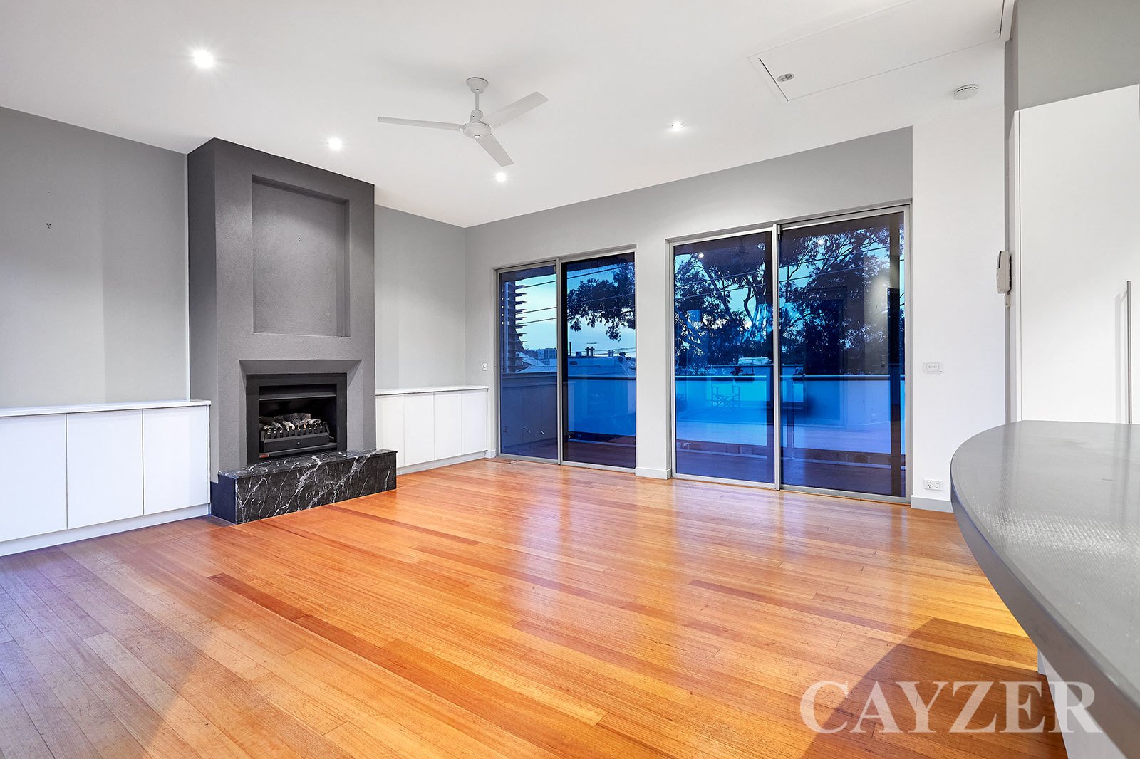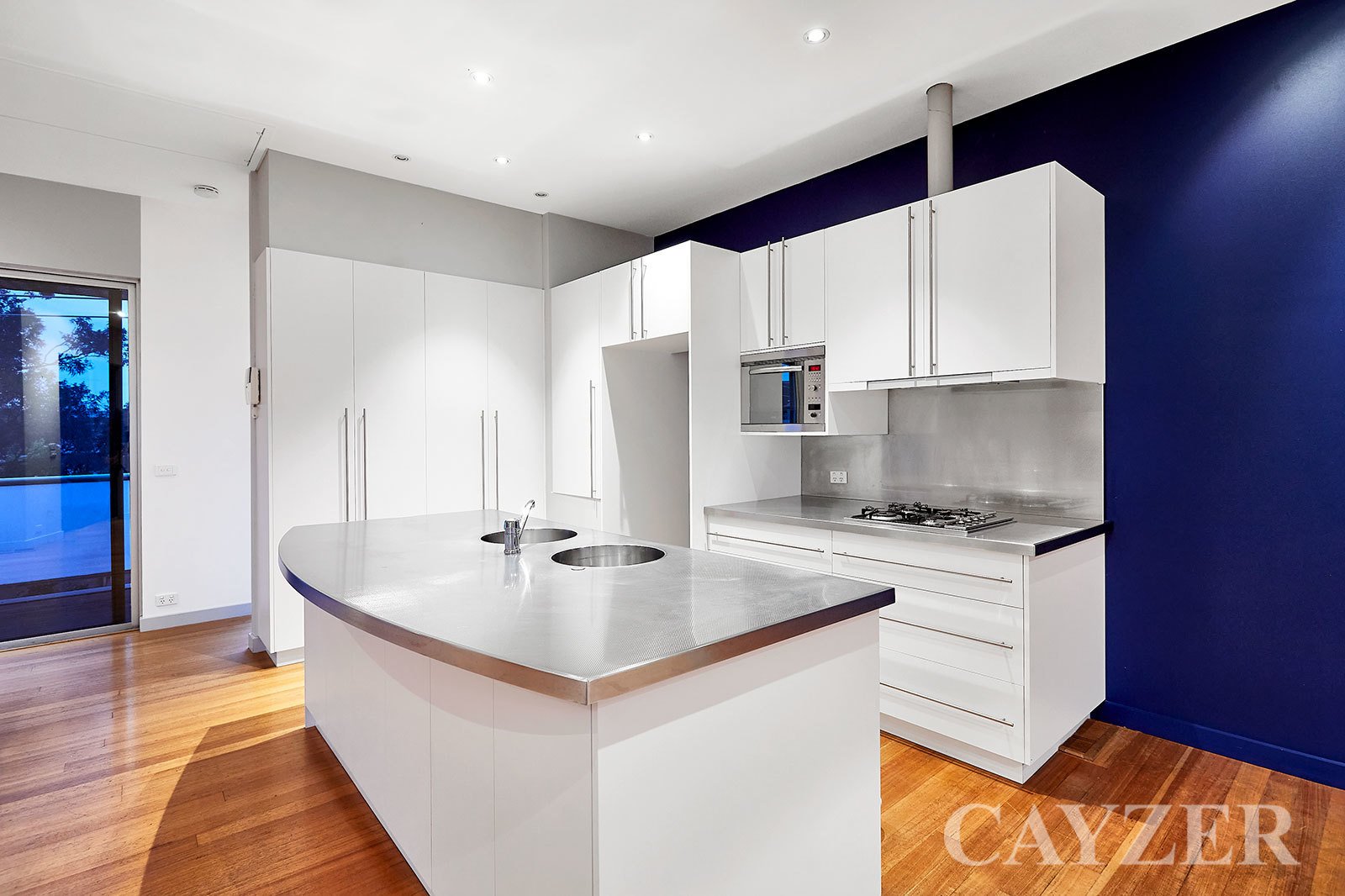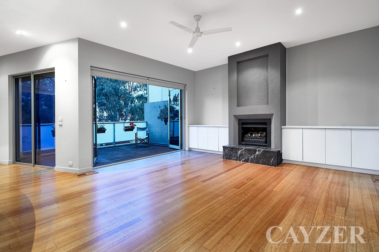 Second Floor: Well-appointed contemporary kitchen with adjacent dining. Expansive light filled living area featuring gas OFP with both North and South facing outdoor terraces with delightful tree-top aspects. Drop down ladder provides access to incredible roof top terrace with 360 degree panoramic views from Albert Park to the CBD.