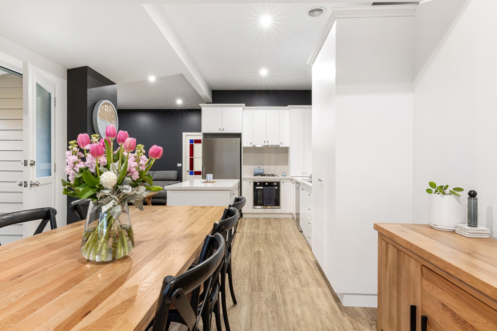 Set on a generous 518m² block, this charming single-story weatherboard residence has been thoughtfully transformed throughout, blending classic character with modern style. The open-plan living, kitchen, and dining area is the heart of the home—bright, spacious, and designed for easy family living and entertaining. The sleek kitchen features quality finishes and appliances, complemented by ample bench space and clever storage solutions.