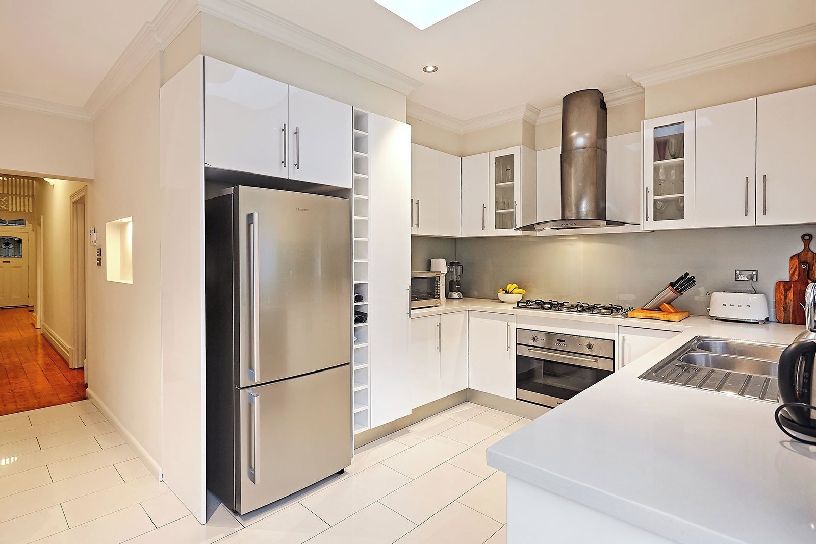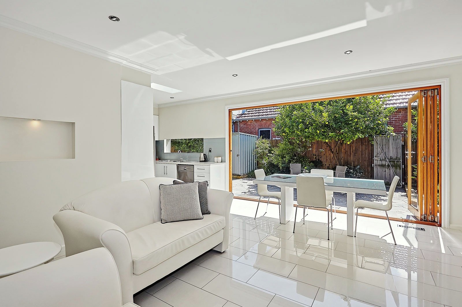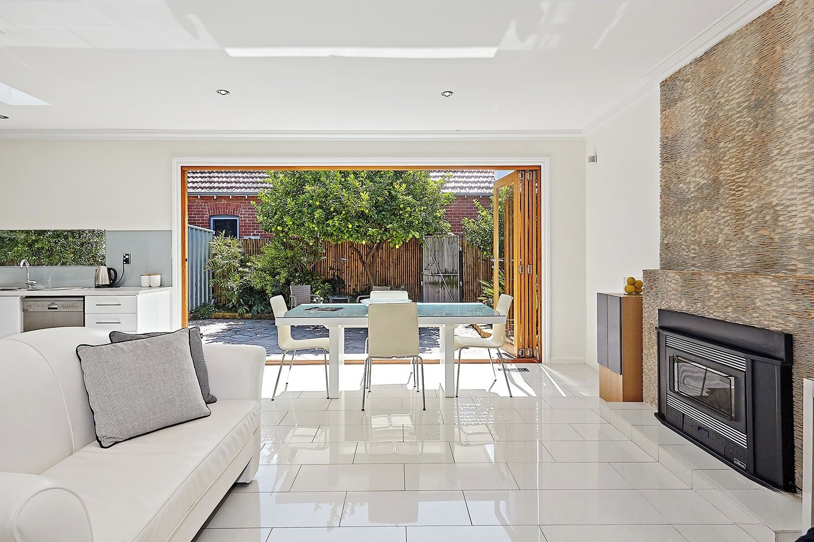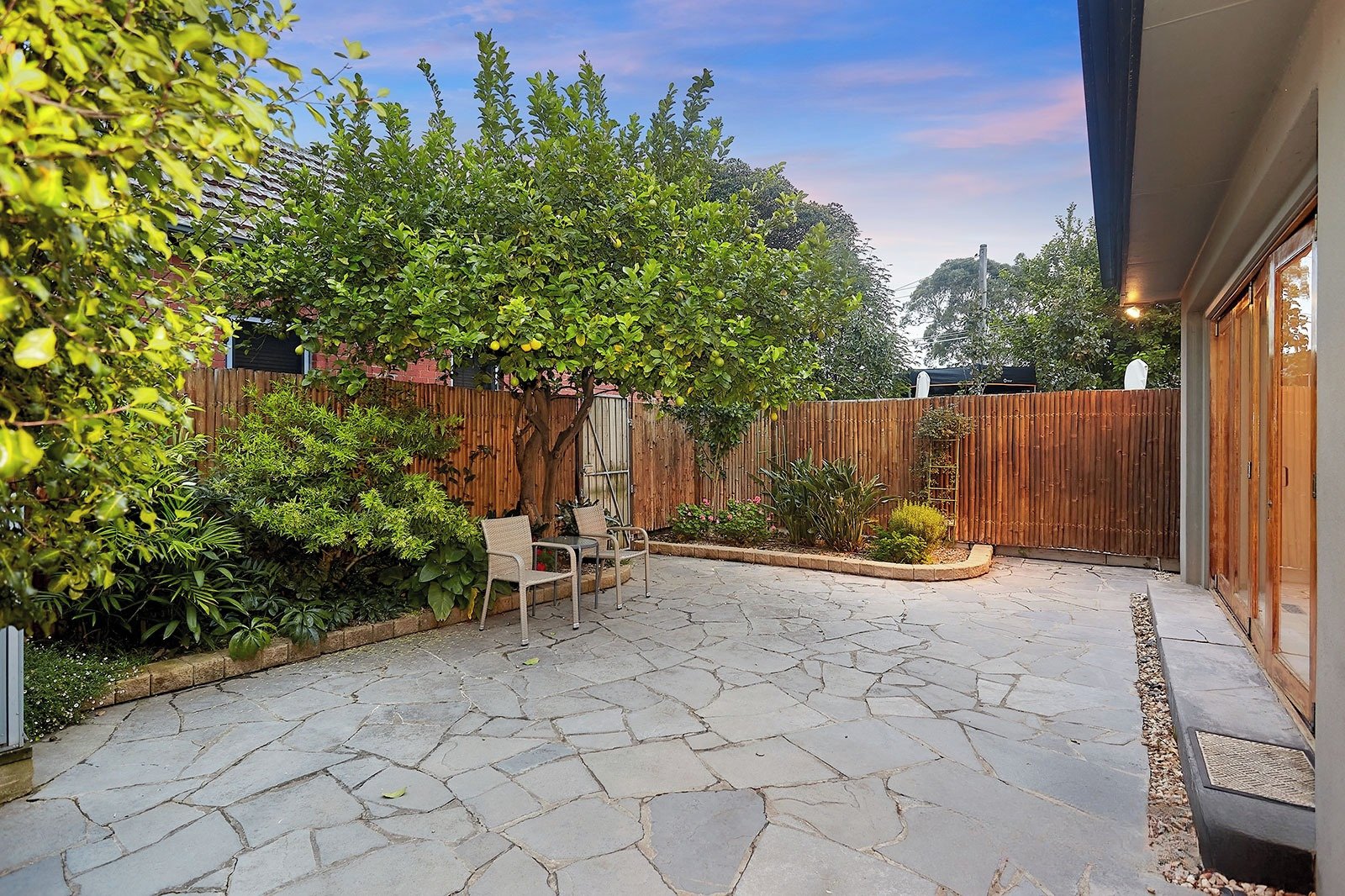 The heart of the home features a fully equipped kitchen with stainless steel appliances and gas cooktop, flowing into a light-filled living area and an elegant formal dining room. French doors open out to a sun-drenched, north-facing paved courtyard, ideal for entertaining or enjoying quiet moments outdoors, with rear pedestrian access adding extra convenience.