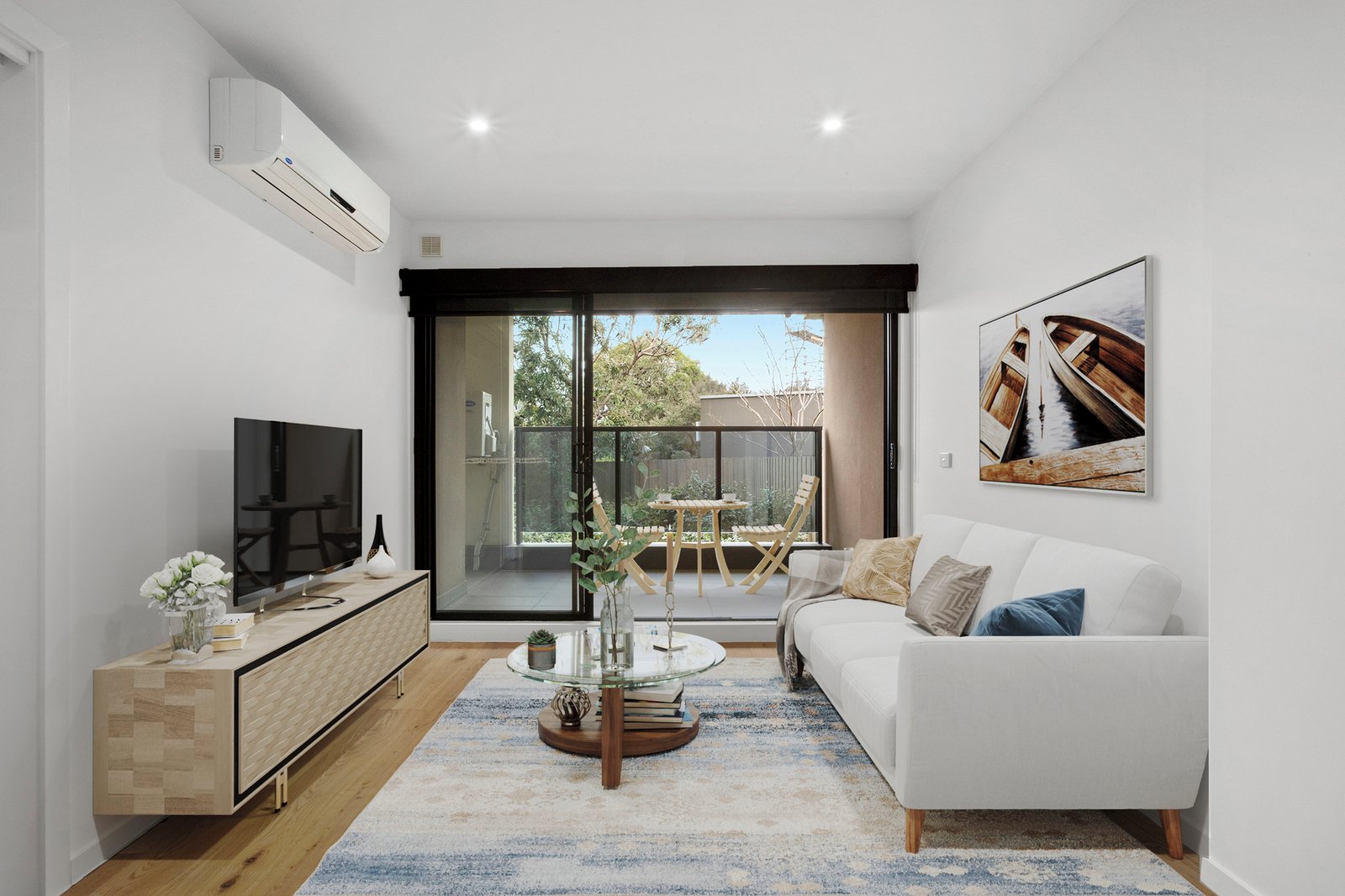 Enjoy light-filled open-plan living, with full-height sliding doors from both the living area and main bedroom leading out to a spacious, west-facing balcony – perfect for soaking up the afternoon sun.
