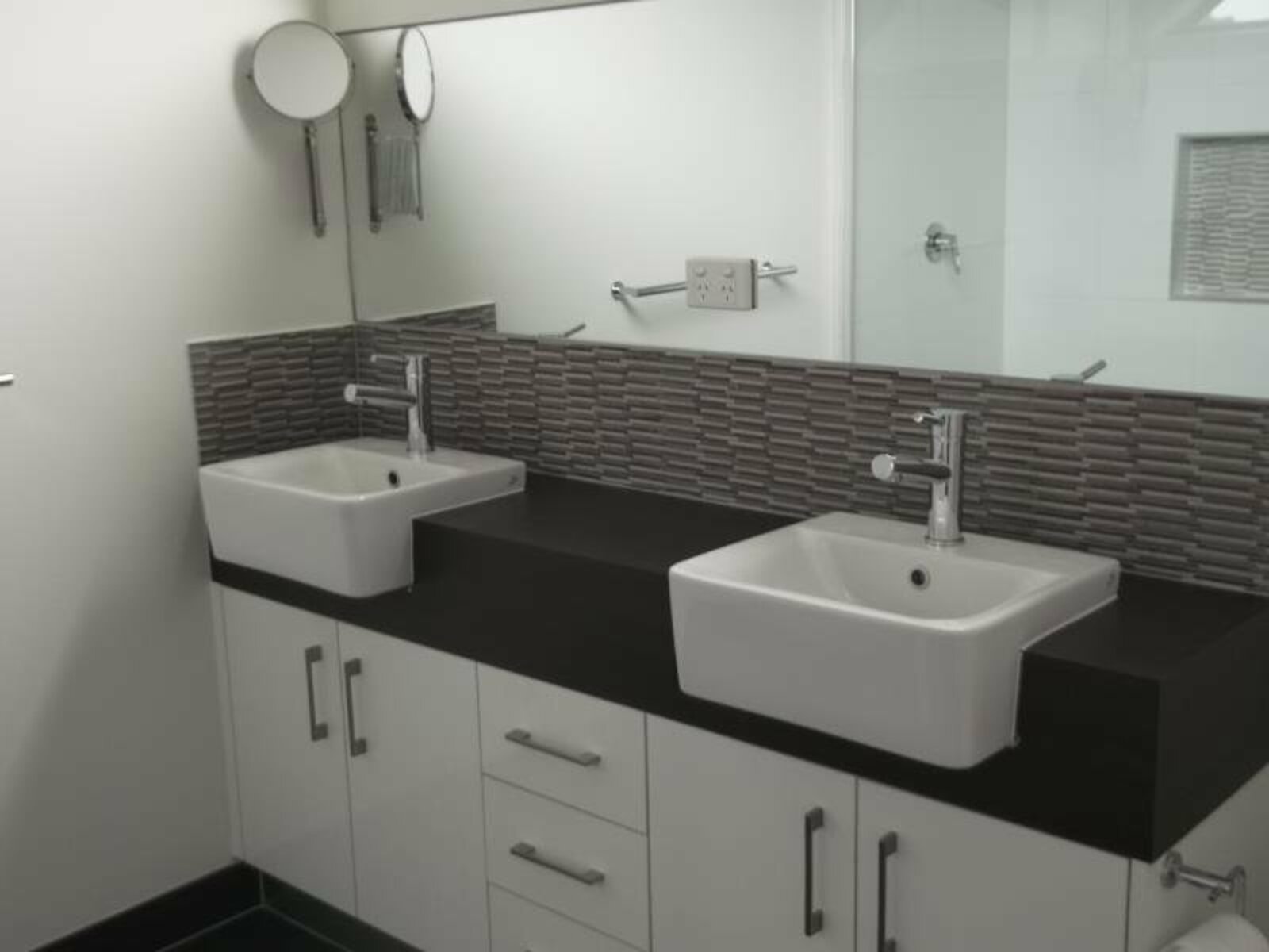 The home boasts two generously sized bedrooms, serviced by a contemporary central bathroom featuring a stylish double basin vanity — perfect for shared living without compromising on personal space.