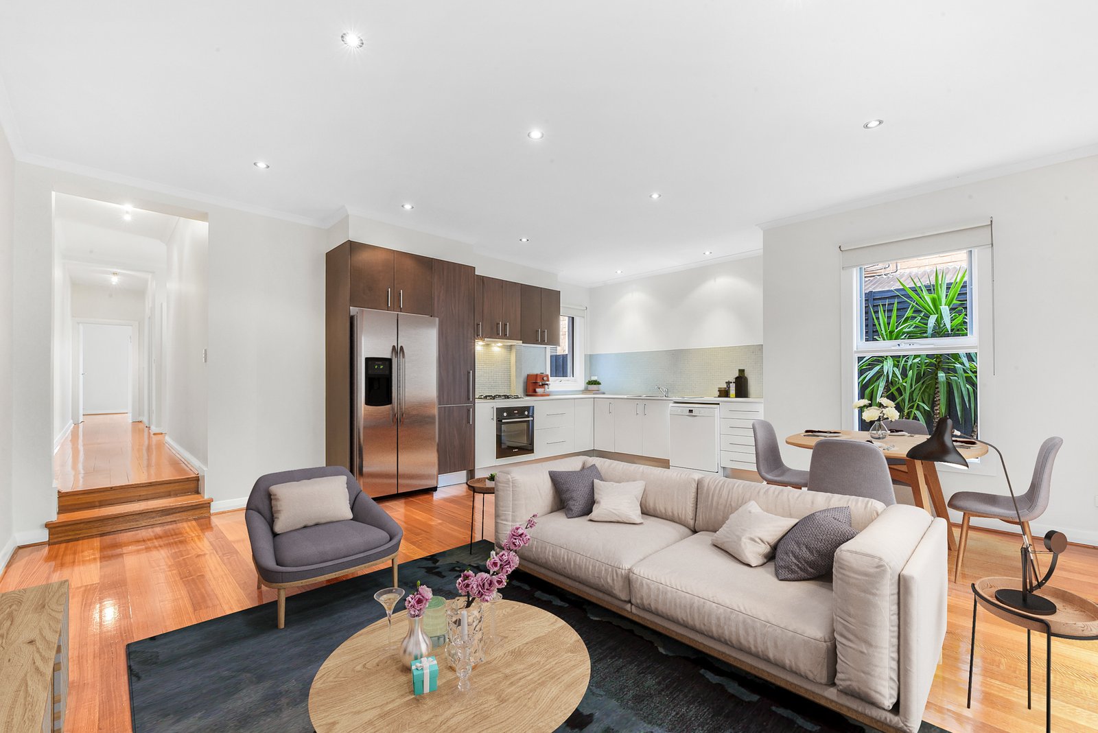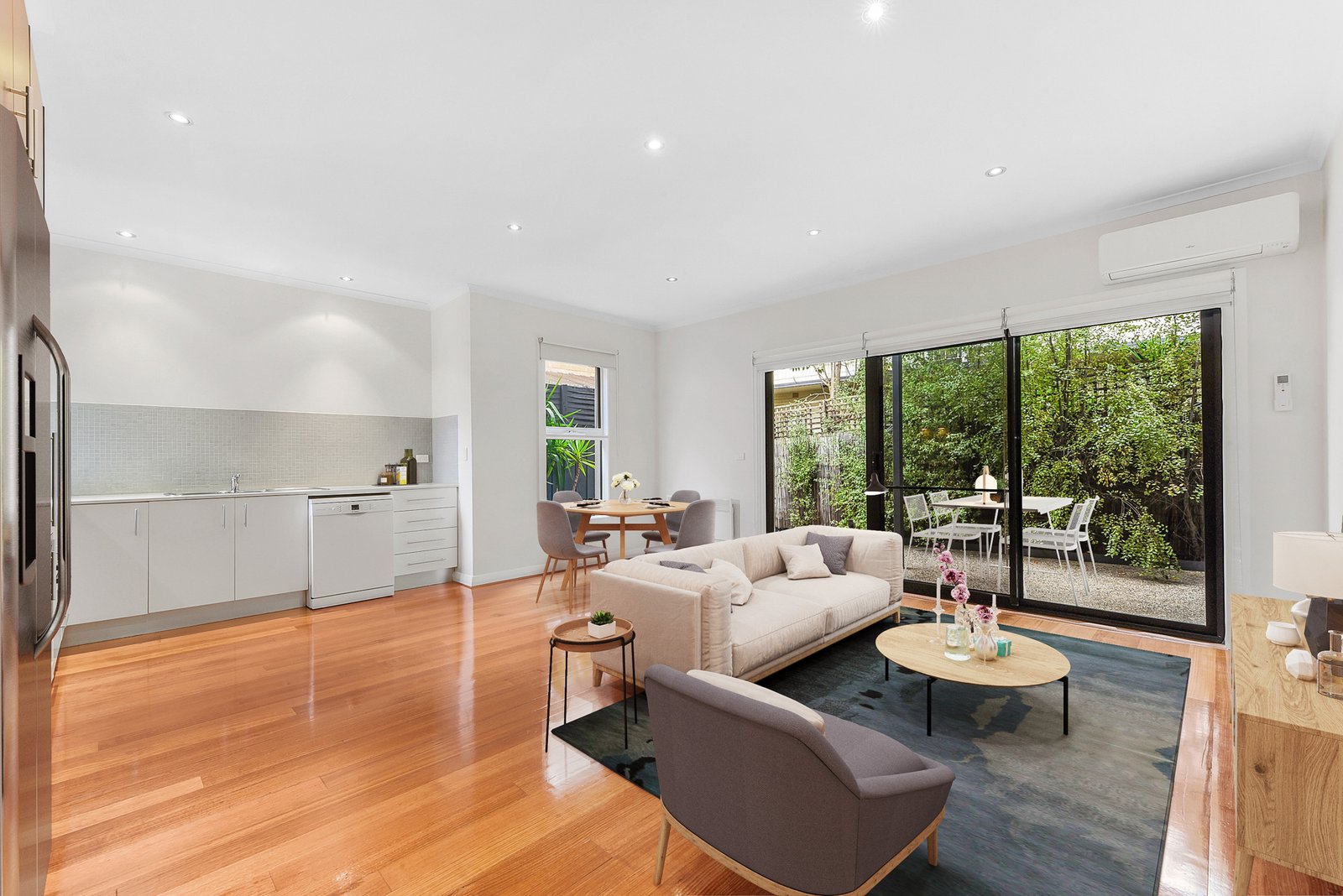 - Light filled lounge room with split system heating and cooling