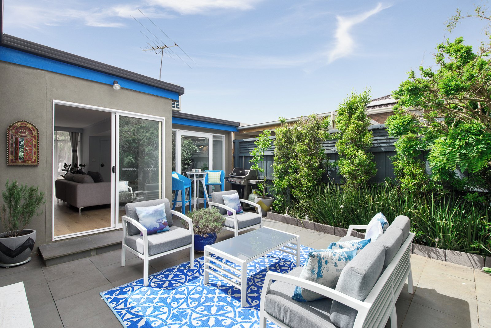 This sleek and stylish, low maintenance home with its own street address and a brilliant indoor/outdoor layout delivers single level ease in a highly sought after locale. You will love the tranquil leafy setting, high secure fencing and quality finish throughout this fully updated 2-bedroom residence featuring light filled, open plan lounge and dining overlooking front & rear landscaped gardens. Glass sliding doors link the living zone and main bedroom to a private al fresco courtyard perfect for entertaining, relaxing and soaking up the sun. A smart granite-topped kitchen with stainless steel appliances & lots of cupboard space and a pristine mosaic glass tile bathroom with European laundry add to the designer style. Built in robes in both bedrooms, additional storage in the lounge & gated tandem parking enhance the sheer liveability. Peacefully located in a quiet street with the Centre Rd bus stop on your doorstep, zoned for Brighton Primary with Bay Street and Church Street shops, cafes, cinema & city train just footsteps away.