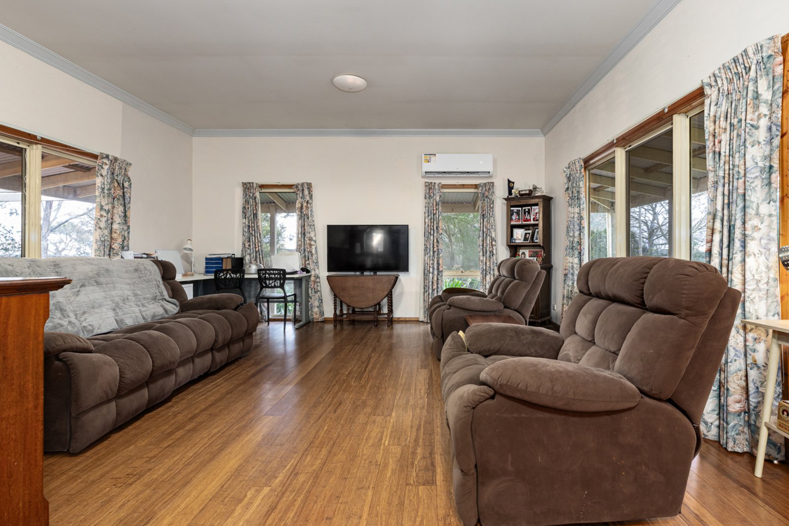 Outside, the property truly shines. Whether you're relaxing under the double carport, working in one of the two large sheds or entertaining in the fully powered man cave, there’s space for every hobby and lifestyle. An additional bungalow with kitchenette and split system makes for the perfect guest retreat, studio, or teenage hideaway. The property is further enhanced by a dam, bore water, and sprawling open space ready for horses, livestock, or simply enjoying the great outdoors.