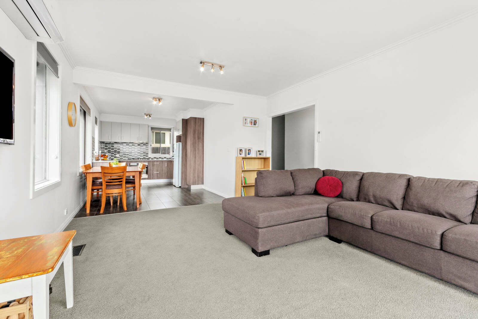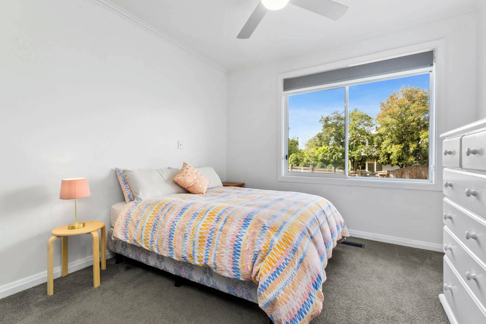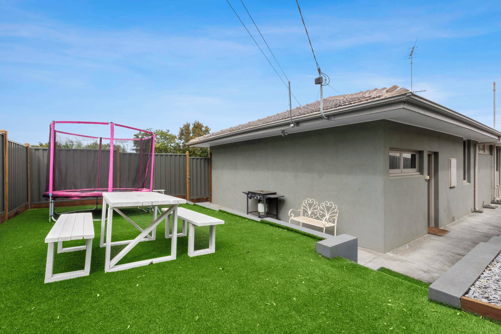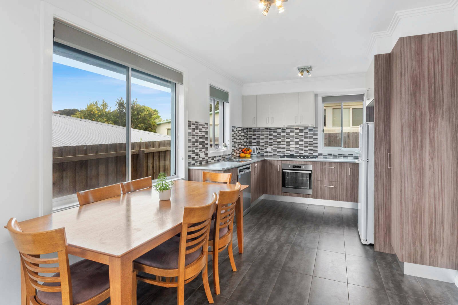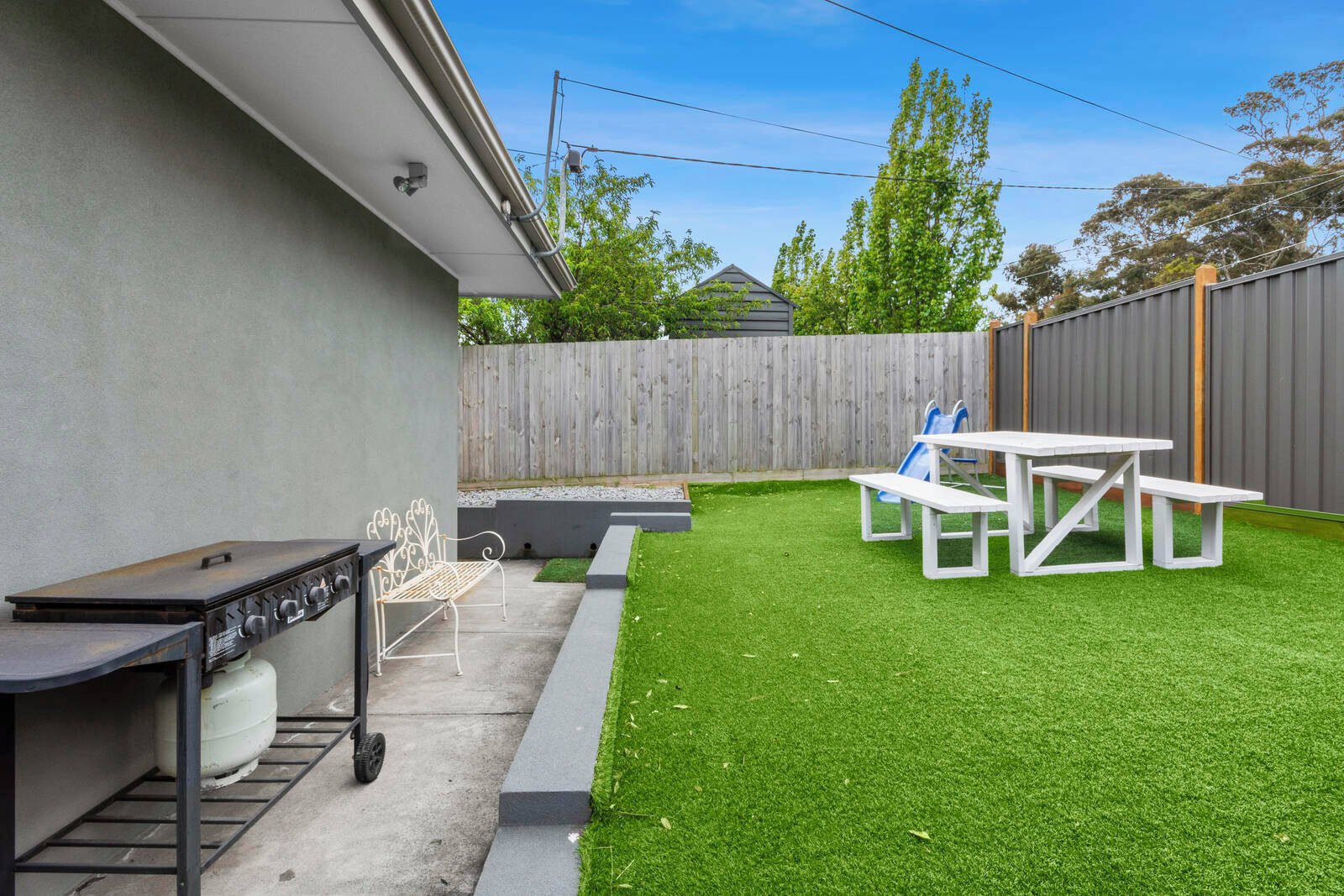 Outside, enjoy a private and low-maintenance backyard complete with a large lawned area – perfect for outdoor entertaining or relaxing on warm afternoons.