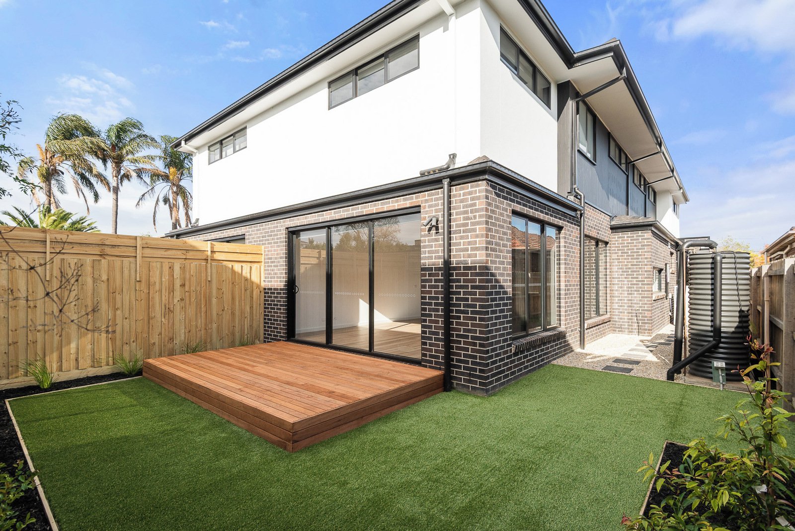 Indoor-outdoor living is achieved by throwing back the stacking sliding doors to the alfresco deck which is flush to the interiors.