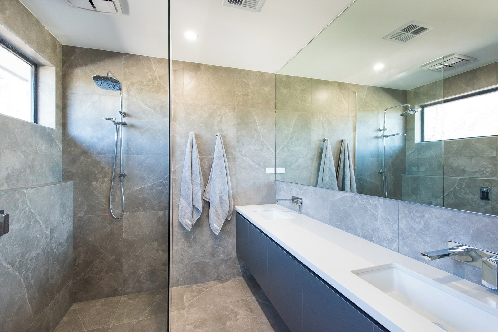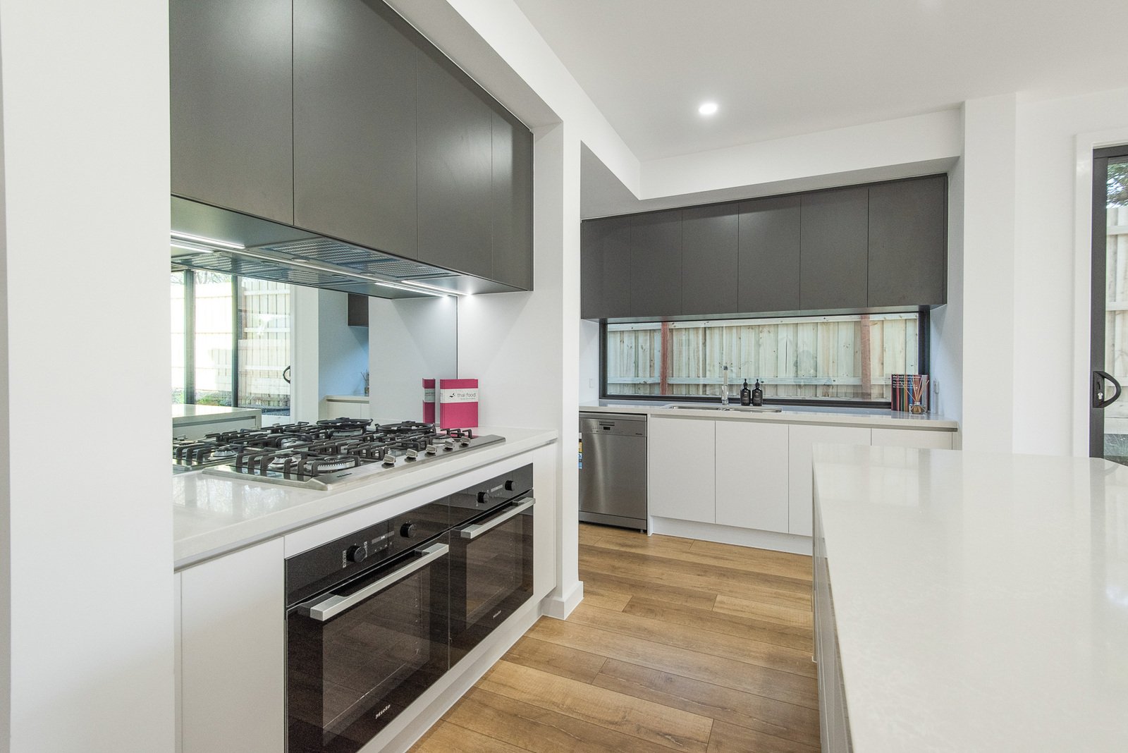 The ground-floor main bedroom offers built in wardrobes and a stunning ensuite showcasing full-height tiling and a luxurious double shower. A stylish powder room and European laundry completes the downstairs layout.