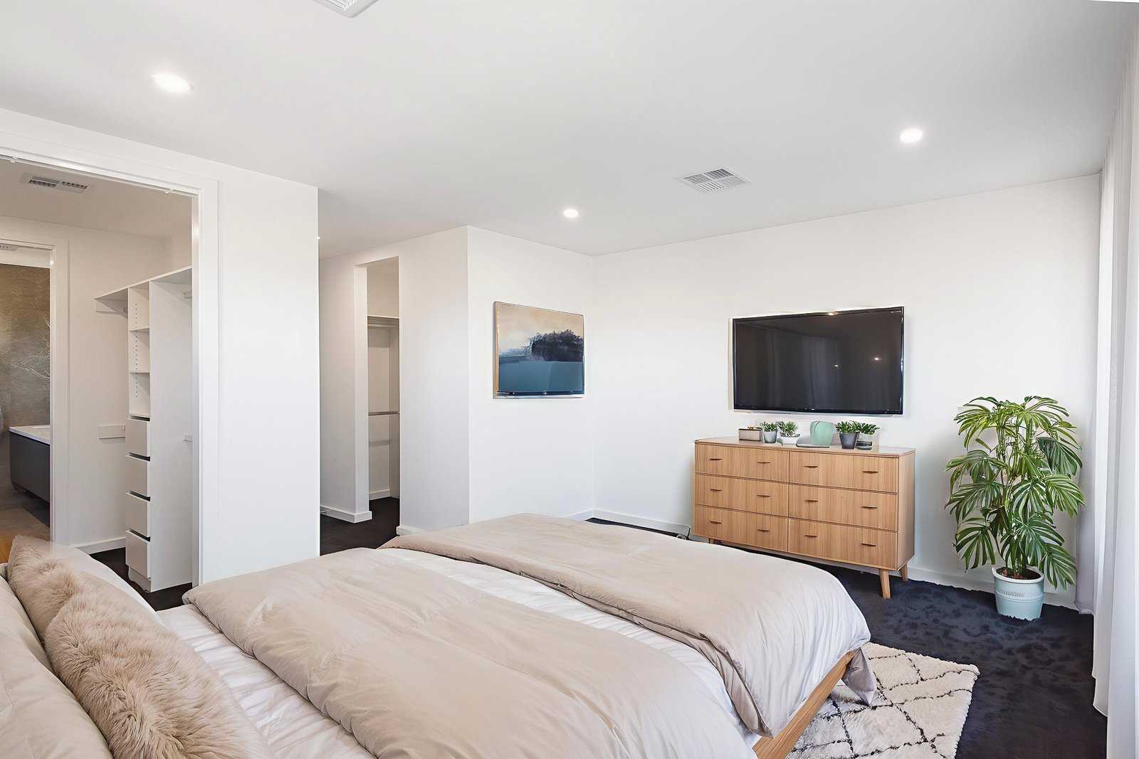 Upstairs, a generous open-plan study provides the ideal retreat or workspace, complemented by two spacious bedrooms with built-in robes and a sleek bathroom with a full-size bath. A second main suite adds flexibility, featuring dual walk-in robes and a deluxe ensuite.