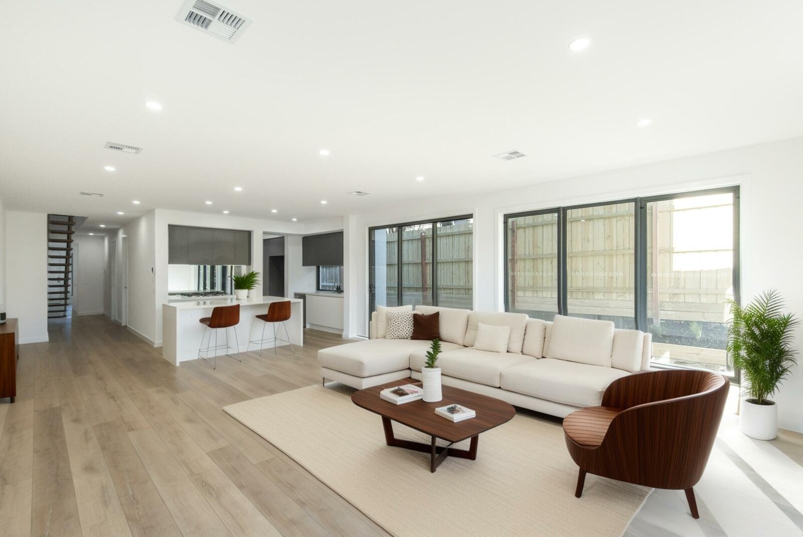 Bathed in natural light, the expansive open-plan living and dining area flows effortlessly to a state-of-the-art kitchen featuring stone benchtops, premium Miele appliances, matte white soft-close cabinetry, and butler’s pantry. Sliding...