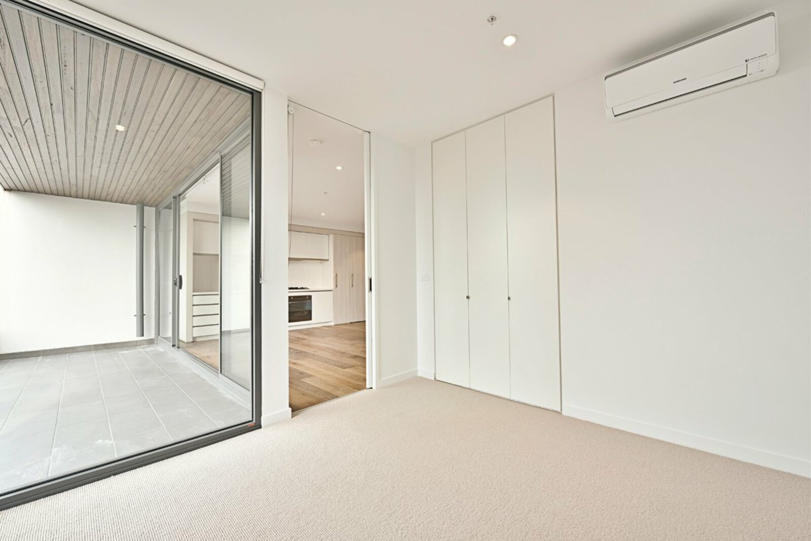 Two spacious bedrooms with plush carpet, floor-to-ceiling built-in robes & white roller blinds