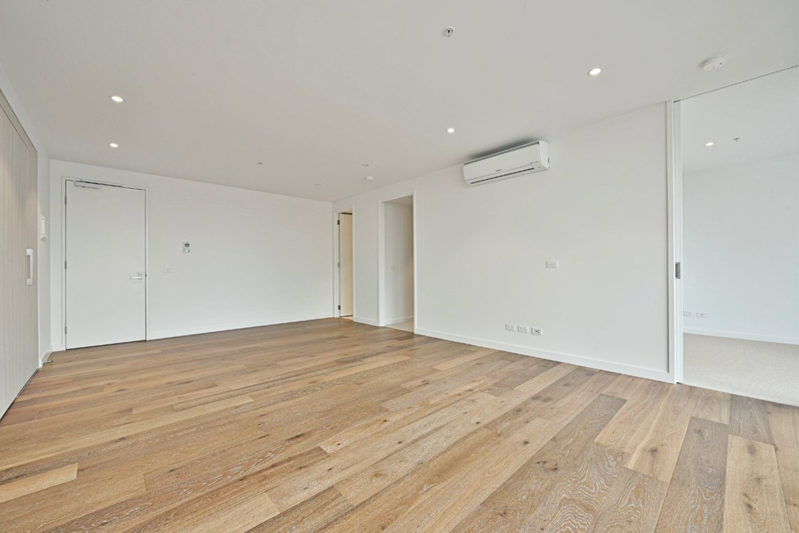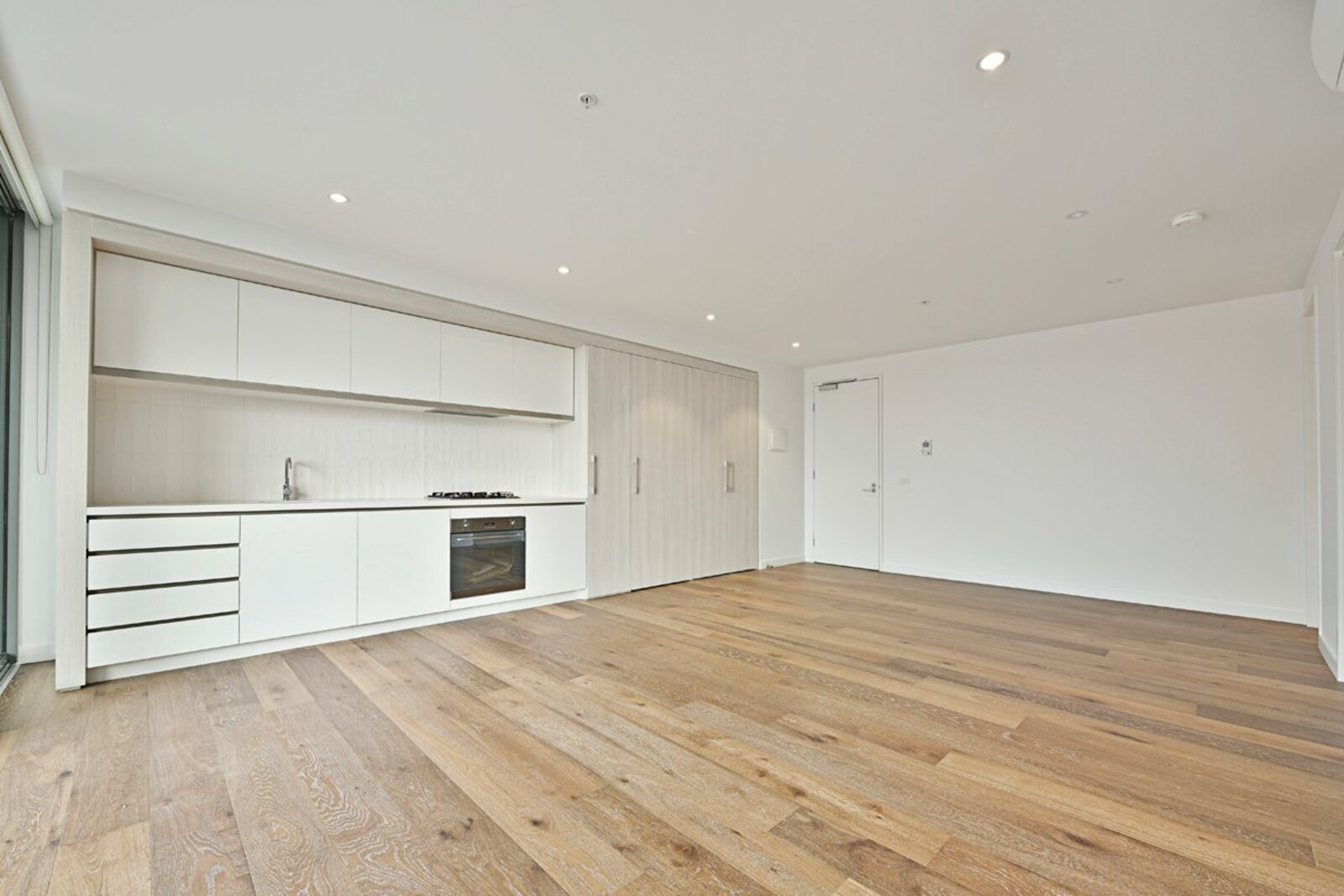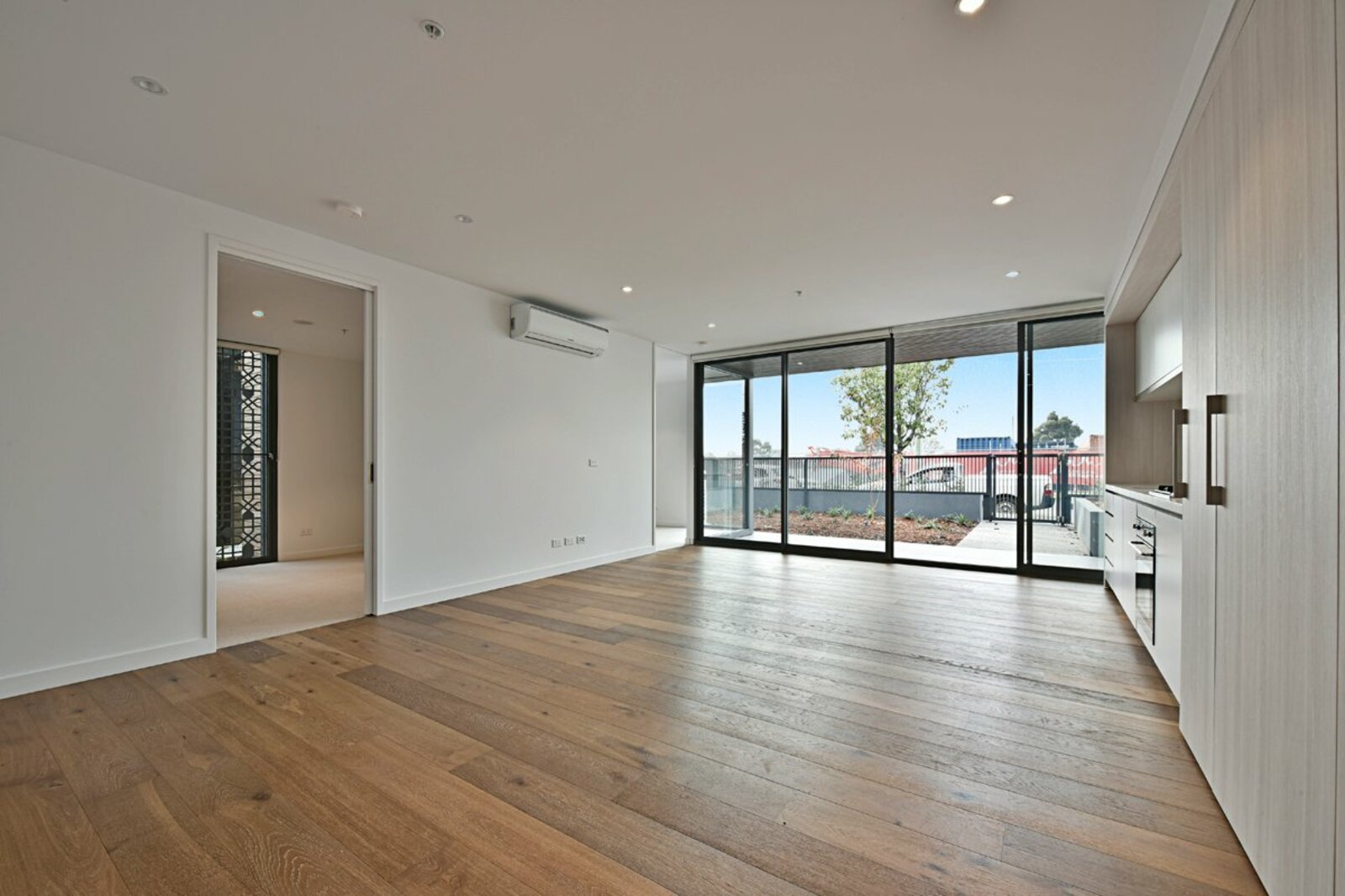 Light-filled open-plan living with timber flooring