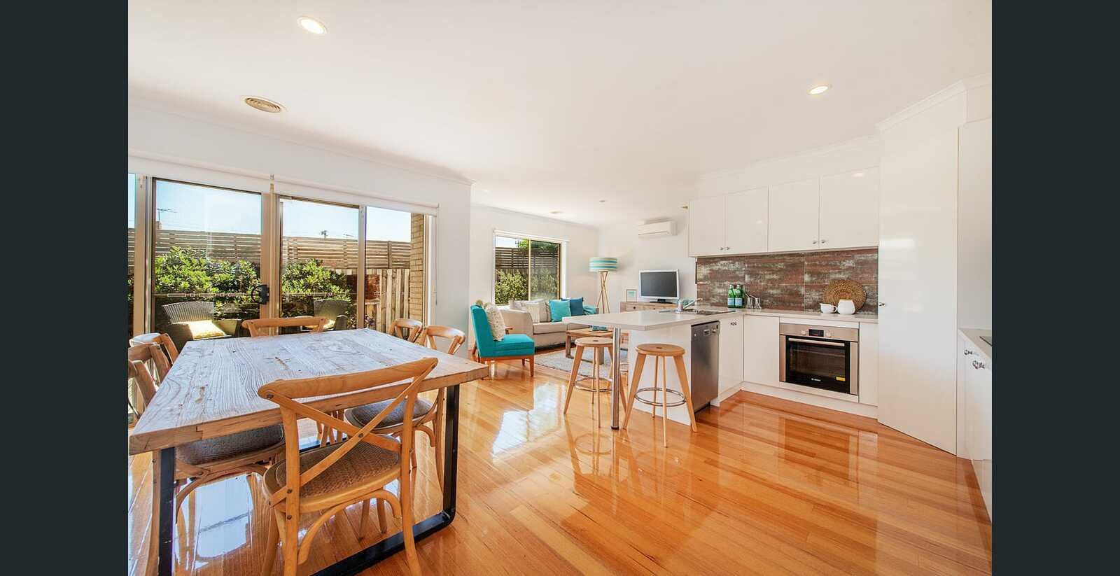 Offering a low maintenance lifestyle in a prime beachside location, this modern and stylish townhouse puts you right beside an endless stretch of sand via the estate's own private gate. You enter to find a stylish, light filled home with a hallway that leads you to the spacious and open living/dining room, boasting solid timber floors and kitchen with stainless steel appliances. There are 3 bedrooms upstairs - all with built in robes, as well as 2 bathrooms, including an ensuite in the master bedroom. Enjoy a downstairs powder room, ducted heating, split system air conditioning, double remote garage, landscaped courtyard with deck and an outdoor shower. Ideally situated, with easy access to local shops and station, with Chelsea, Mordialloc and the Mornington Peninsula all within easy reach.