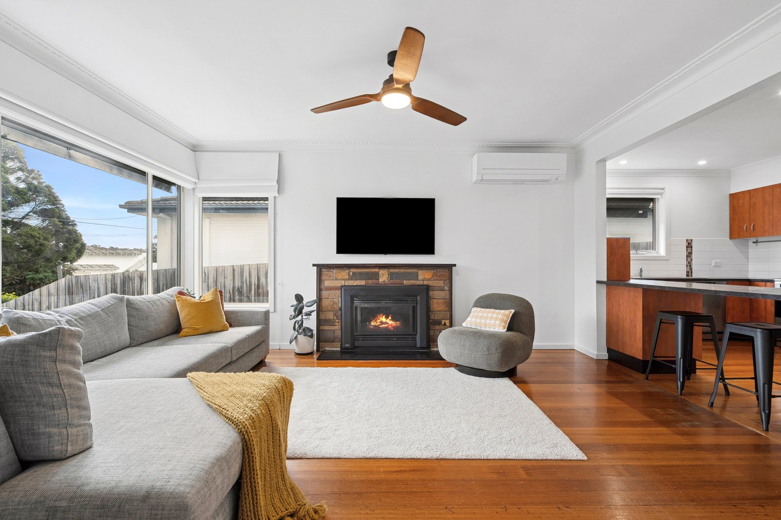 Outside, the alfresco offers a private and sheltered space to relax or entertain, and the backyard provides a secure space for the kids to play. A detached studio offers versatile options for a home office, workshop or storage facilities, and the long driveway accommodates plenty of off-street parking.