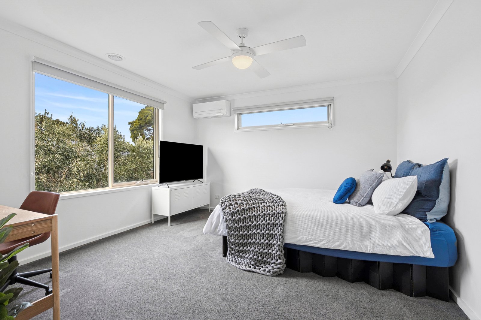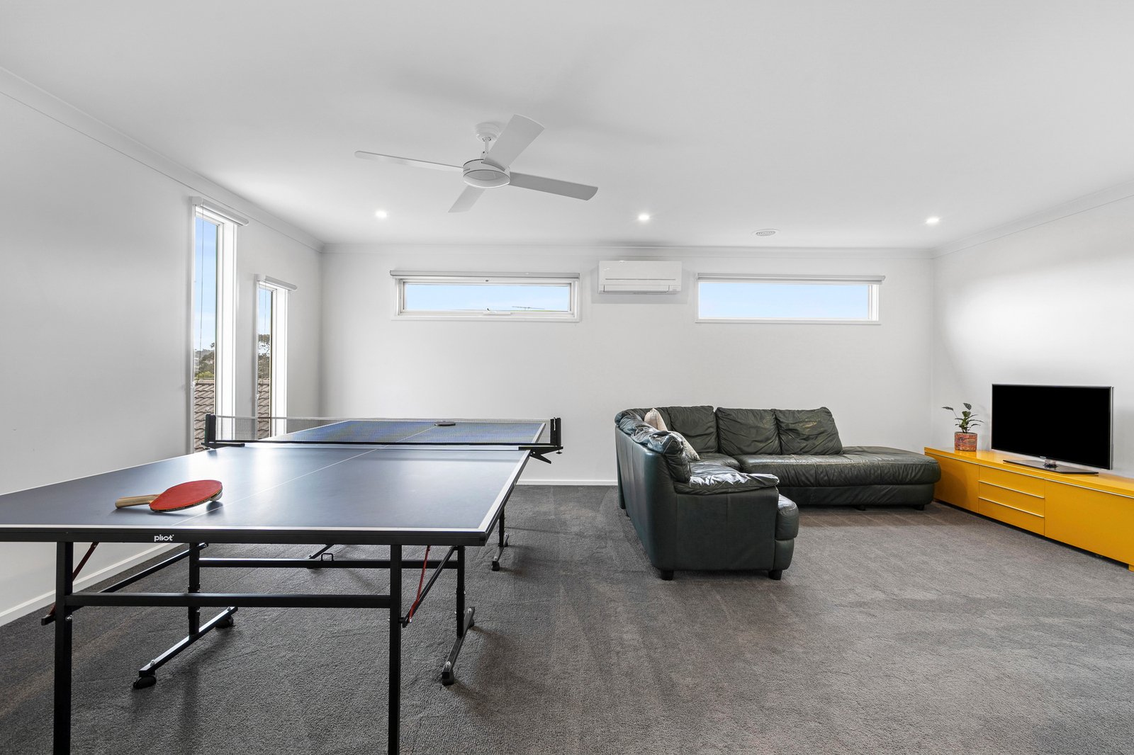Upstairs accommodates two additional bedrooms, one with built-in robes, another with space for walk-in robes and direct access to a contemporary two-way bathroom. A large study on this level provides a secluded space to work from home or is also suitable as a sixth bedroom. The upstairs living area offers the ultimate kids’ retreat, with plenty of space to play or entertain friends, along with spectacular elevated views across Highton.