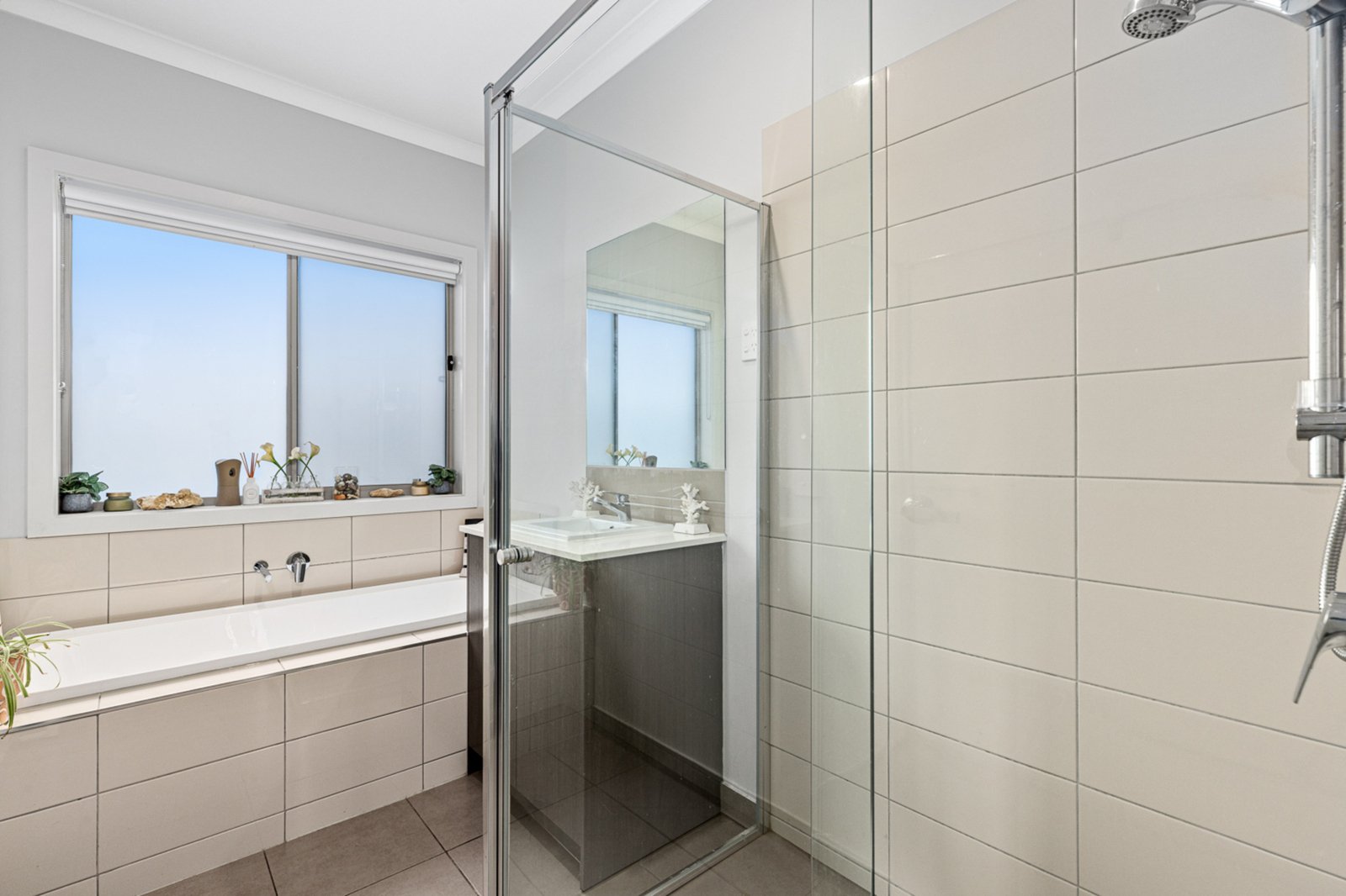 The home features four generously sized bedrooms, including a spacious master suite complete with a walk-in robe and private ensuite. The remaining three bedrooms each include built-in robes and are serviced by a central family bathroom with a separate shower, bath, vanity, and a separate toilet for added convenience.