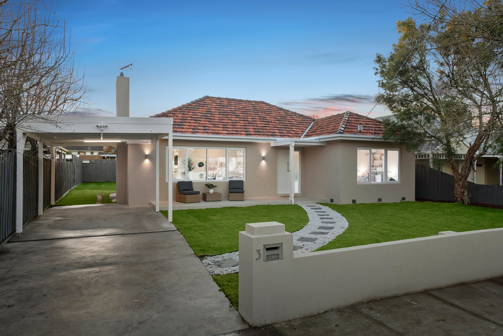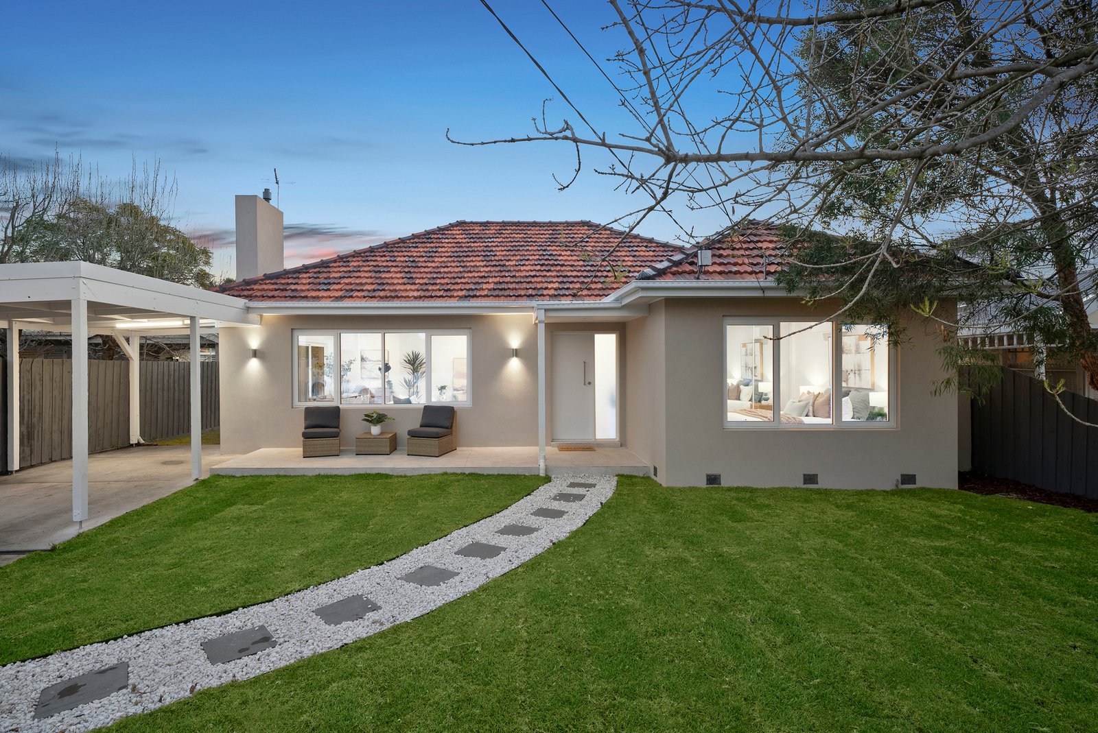 A secure carport provides convenient off-street parking, while the front garden and open porch deliver a warm and inviting welcome.