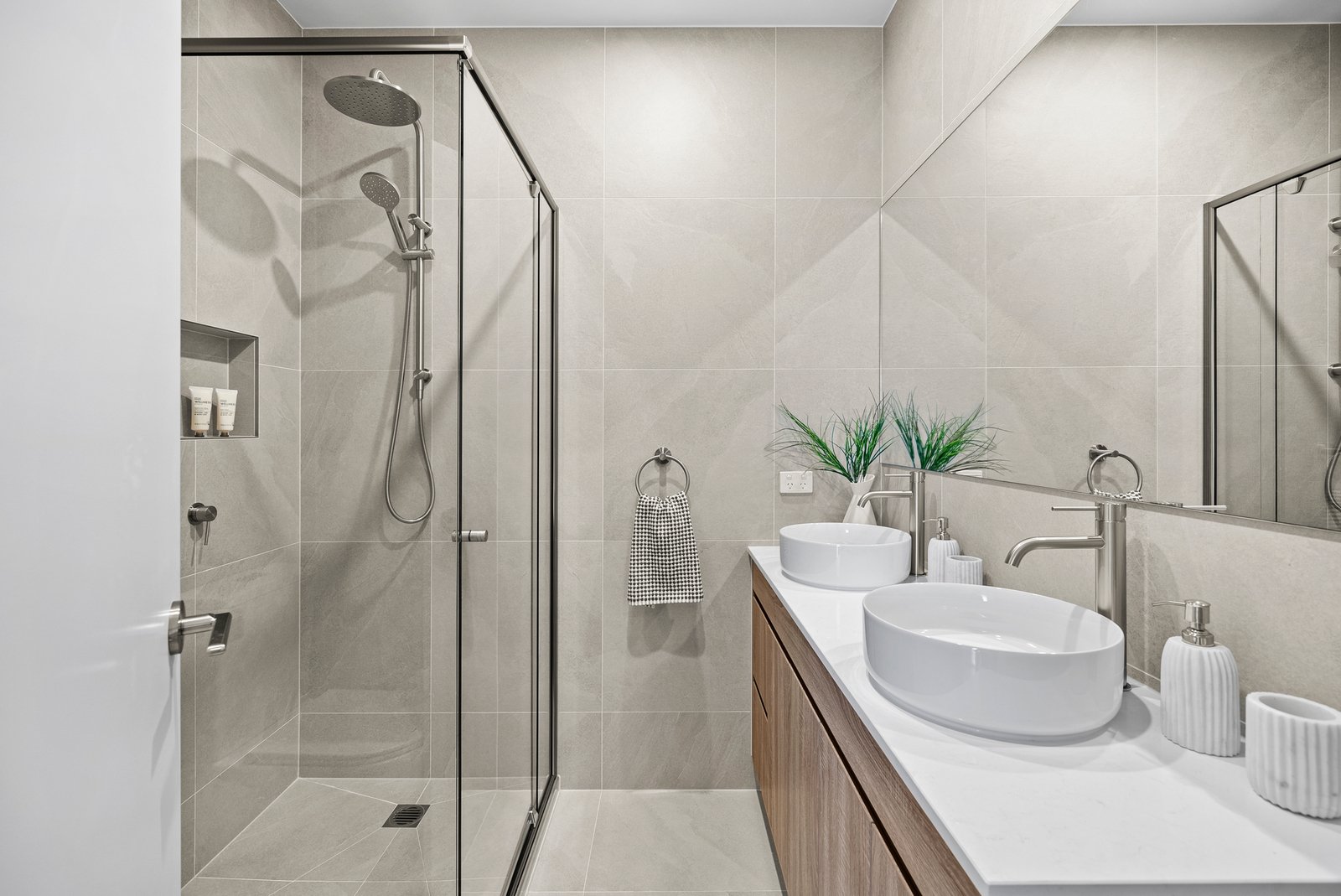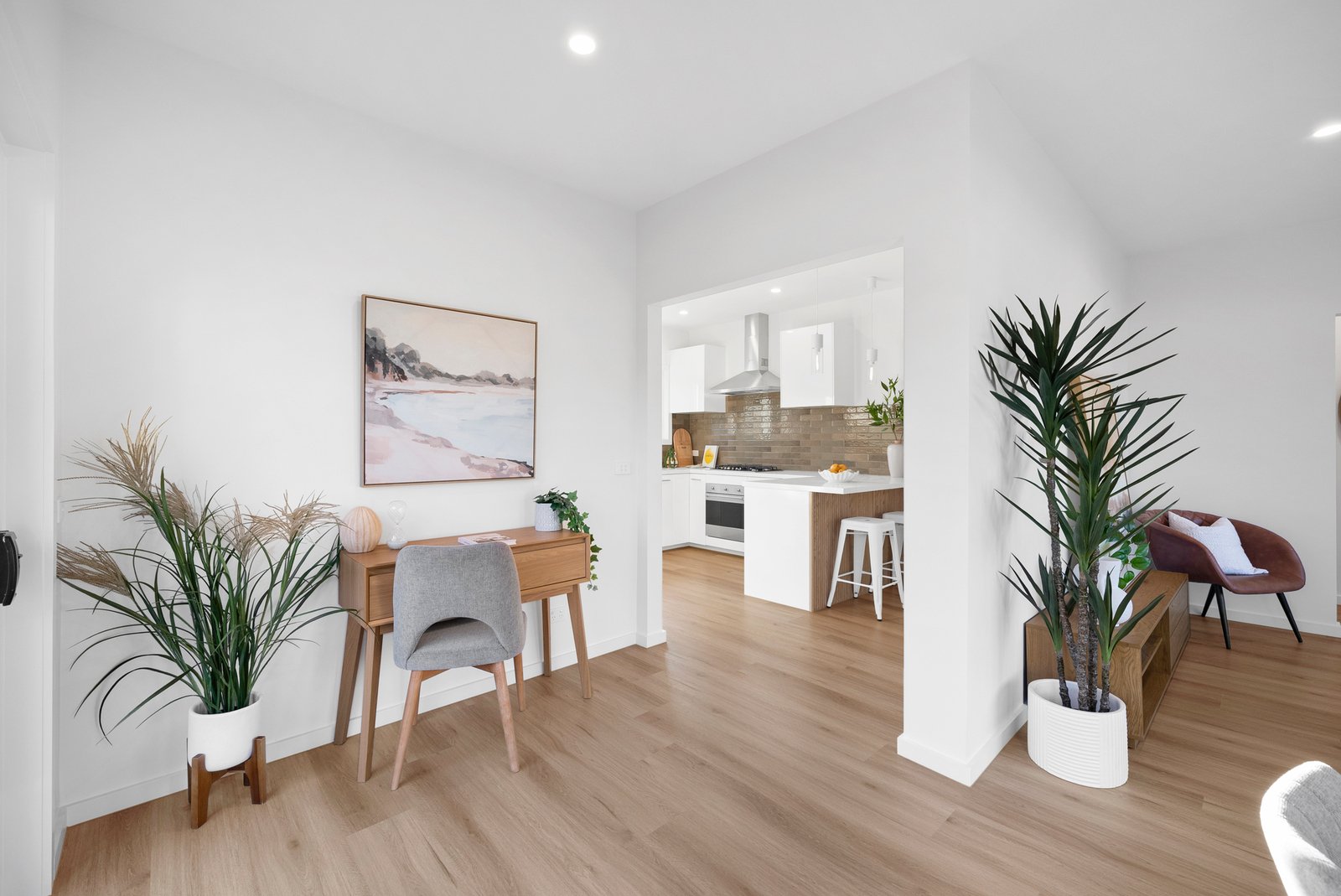 Step inside to discover three spacious bedrooms with mirrored built-in robes and two fully tiled bathrooms, including a sleek double-vanity ensuite. The bright living and dining areas, centred around a premium EmberArc electric fireplace, create the perfect setting to welcome friends and enjoy family time. A cleverly positioned study nook adds versatility to suit your modern lifestyle.
