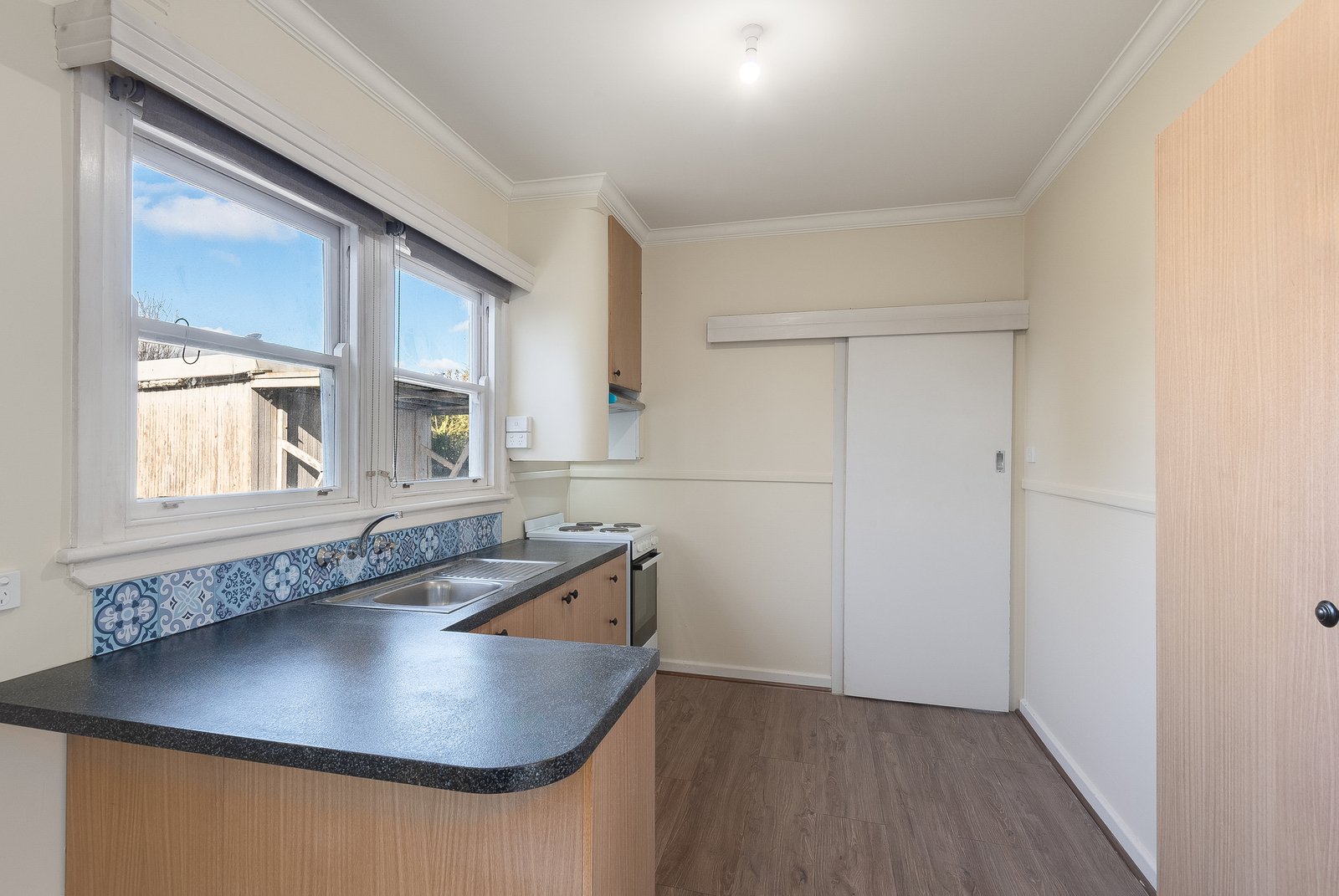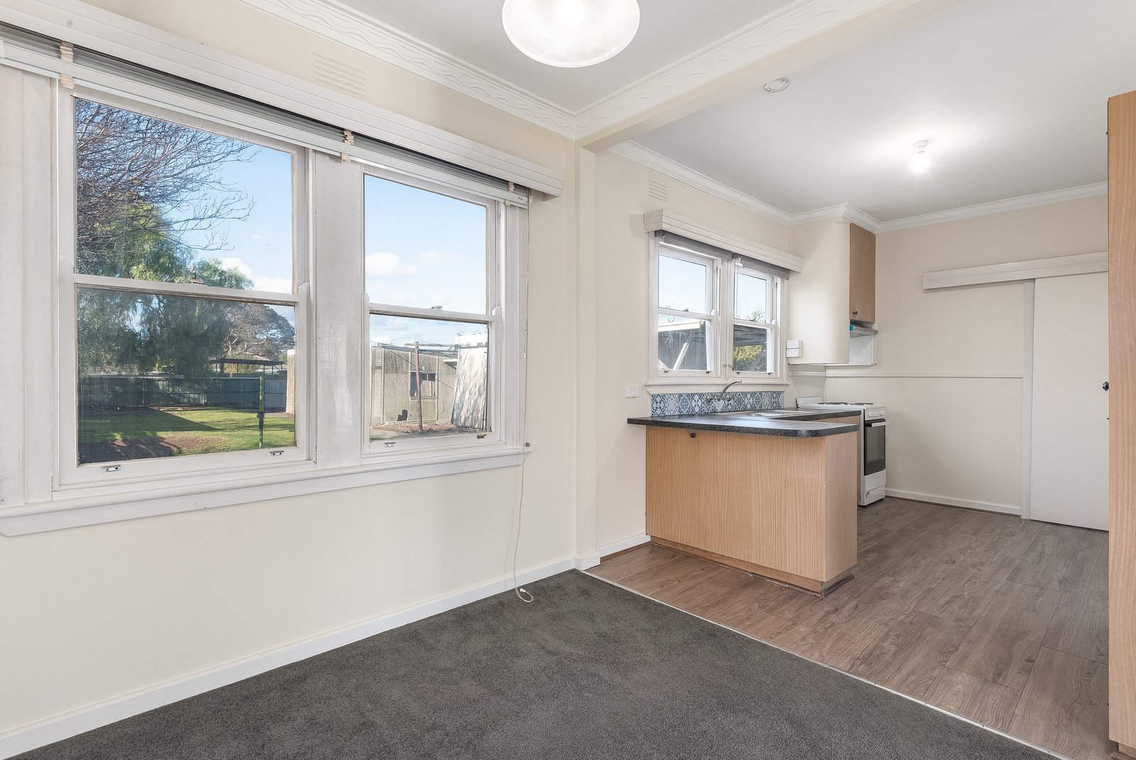 The classic weatherboard home offers original charm, with a porch entry leading you into a welcoming living and dining room. Featuring a brick mantel and decorative cornice, the space retains original character, with a fresh coat of paint, modern carpet and split system heating and cooling for contemporary comfort. The adjoining kitchen features updated cabinetry, 600mm electric oven and cooktop, and is well-positioned to overlook the backyard. Comprising three bedrooms, two include built-in robes, all serviced by a bright bathroom, with separate wc and laundry at the rear.