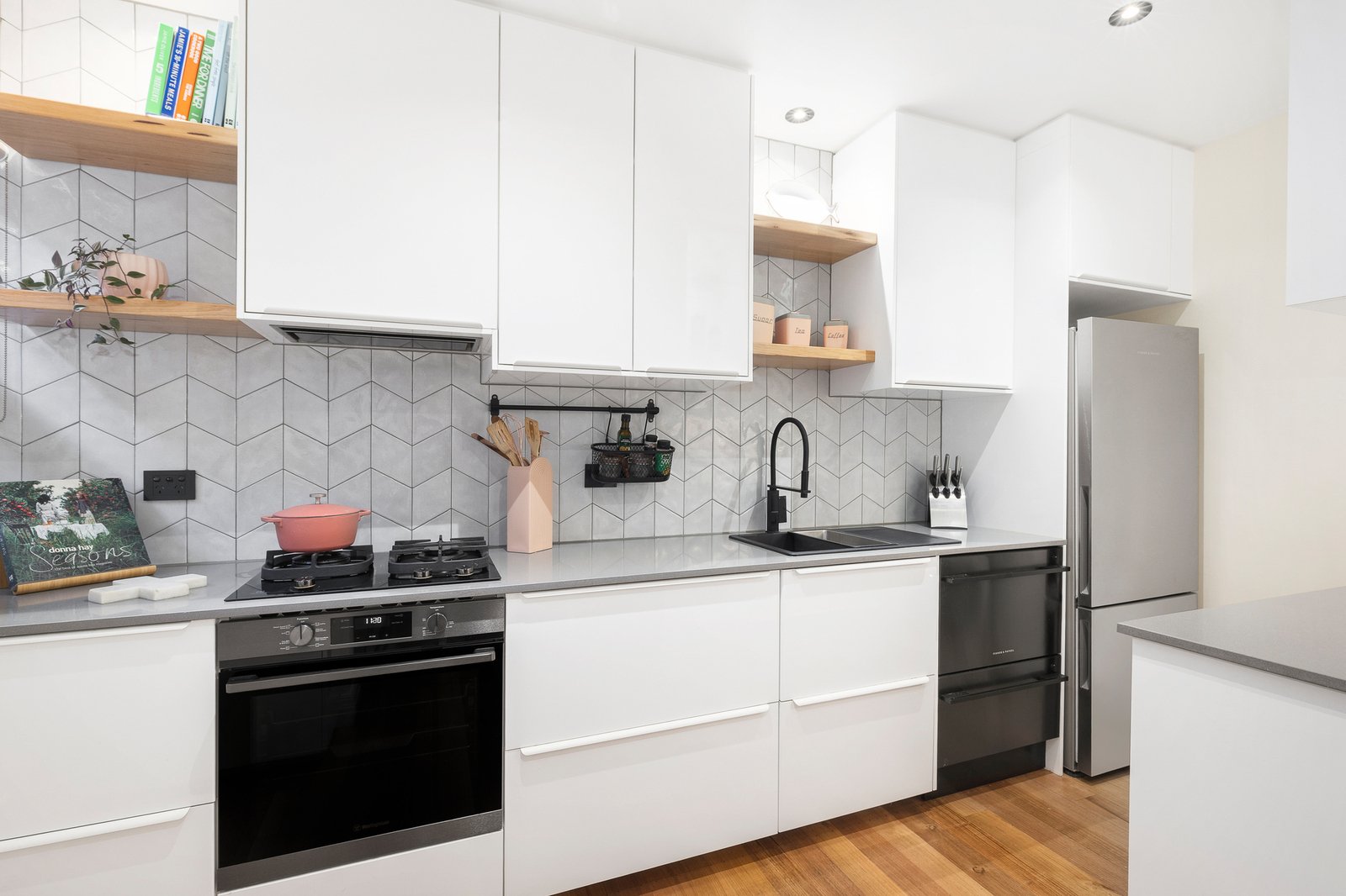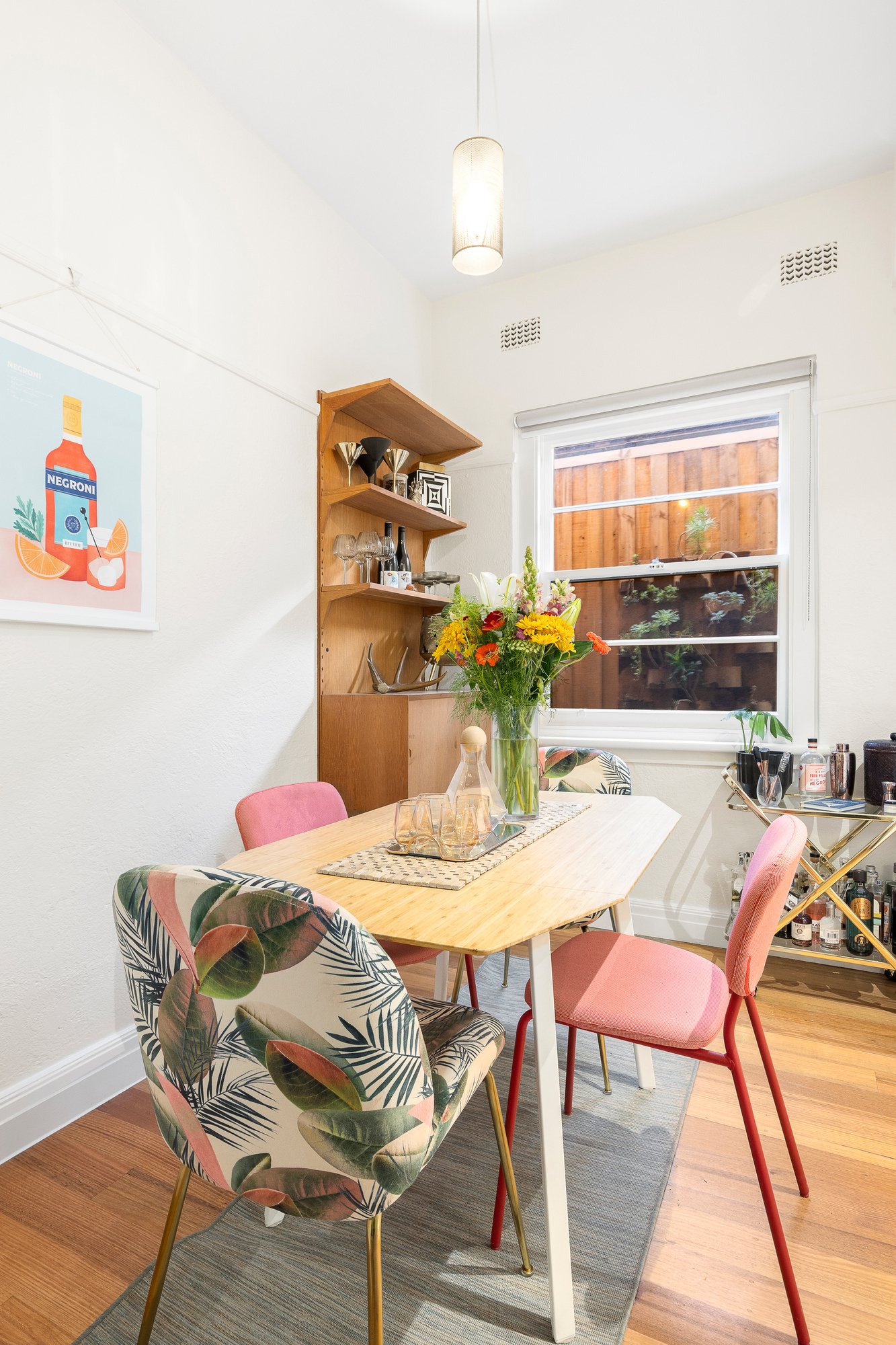 Rich hardwood floors flow through to the dining area and a thoughtfully designed kitchen which has been modernised with crisp white cabinetry, stone benchtops and quality appliances, complementing the home's character and combining to create a great space to entertain.
