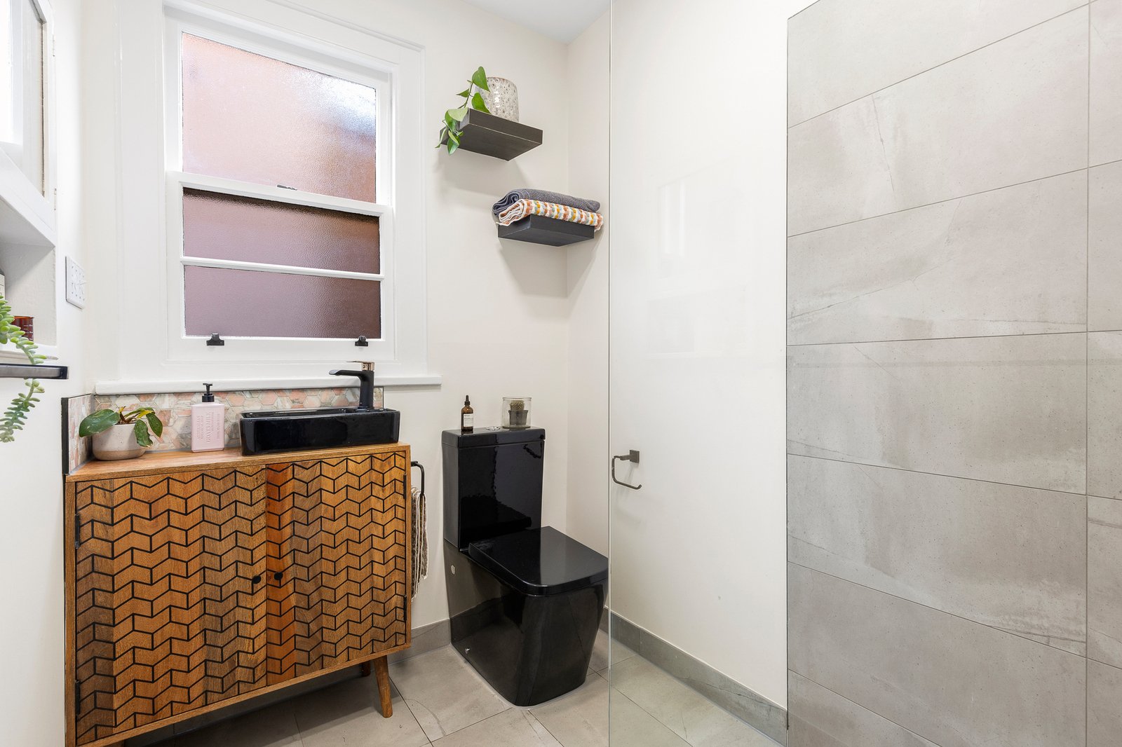 The private bedroom is generously proportioned, features built-in robes and is serviced by the stylishly renovated bathroom, cleverly finished with a walk-in shower and plenty of storage.