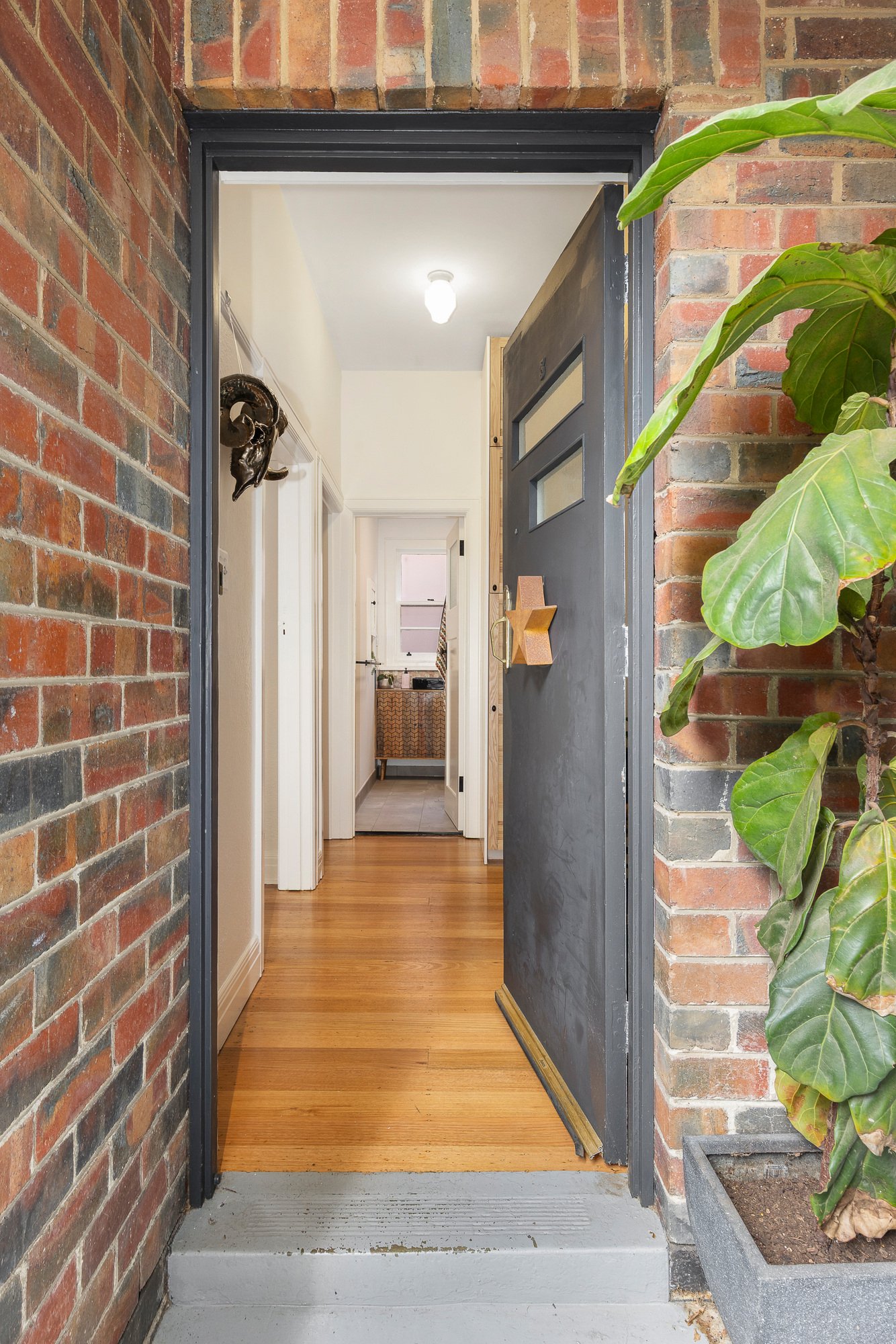 A hidden euro style laundry, wall panel heating and secure intercom entry add to the comfort and security, while original period features—like ornate plasterwork, picture rails, light switches and charming Deco windows—underscore the home’s heritage appeal.