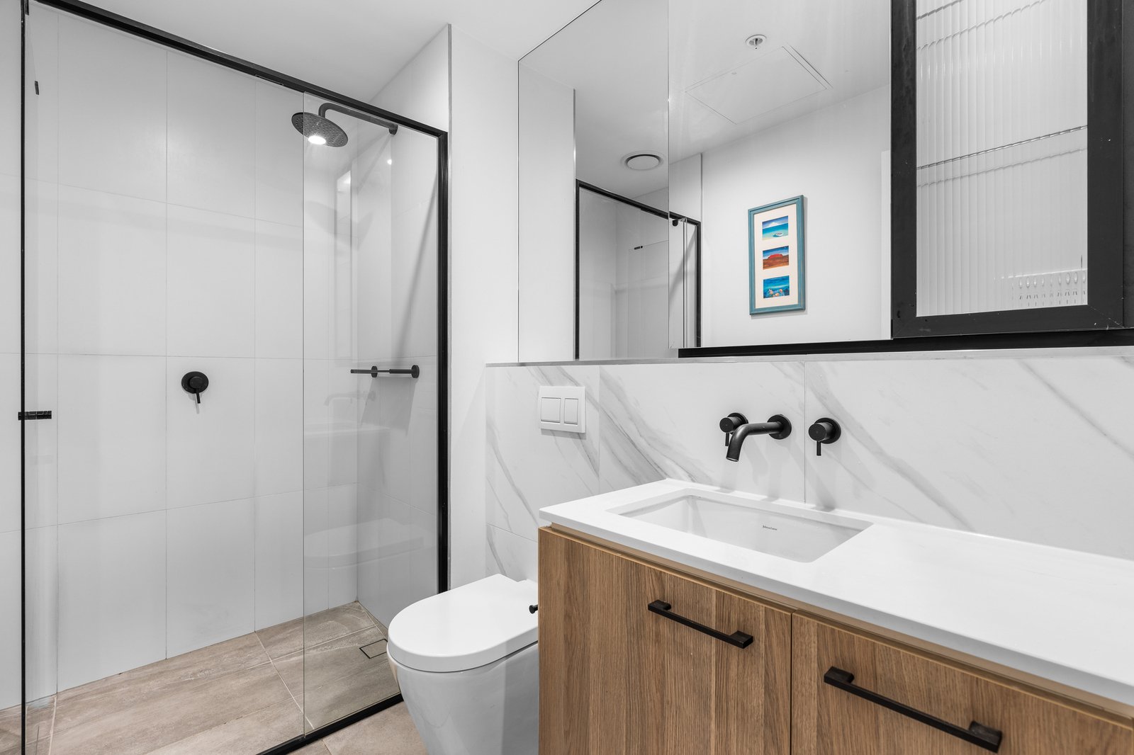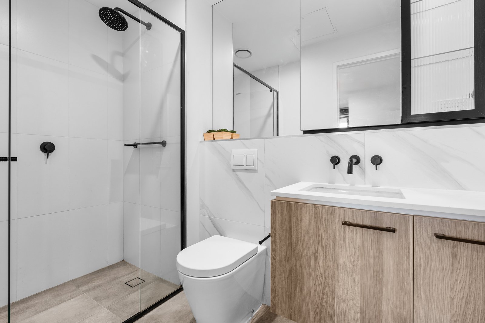 Both bedrooms feature built-in robes, with the main enjoying a sophisticated ensuite. Oak floors, matte black fixtures, and timber accents lend a sleek European edge, while comforts like double glazing, reverse cycle air conditioning, and double blinds deliver year-round ease.