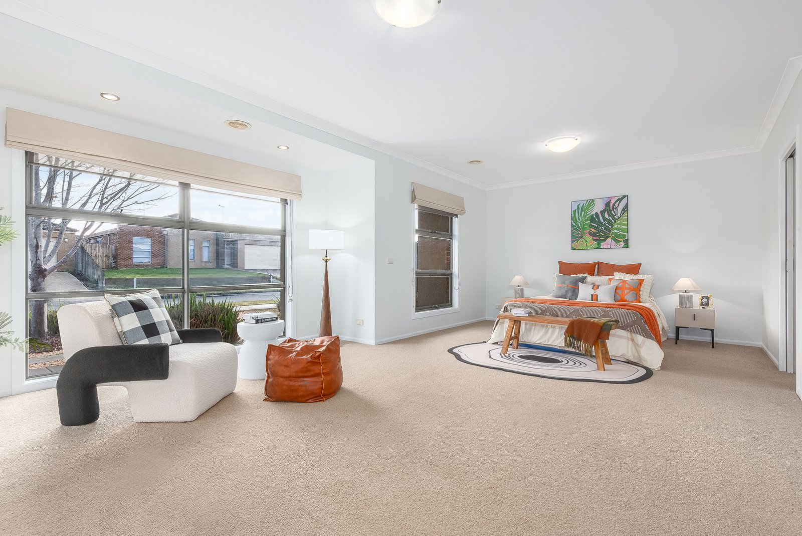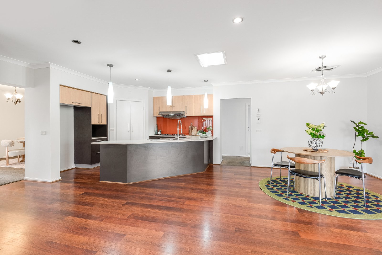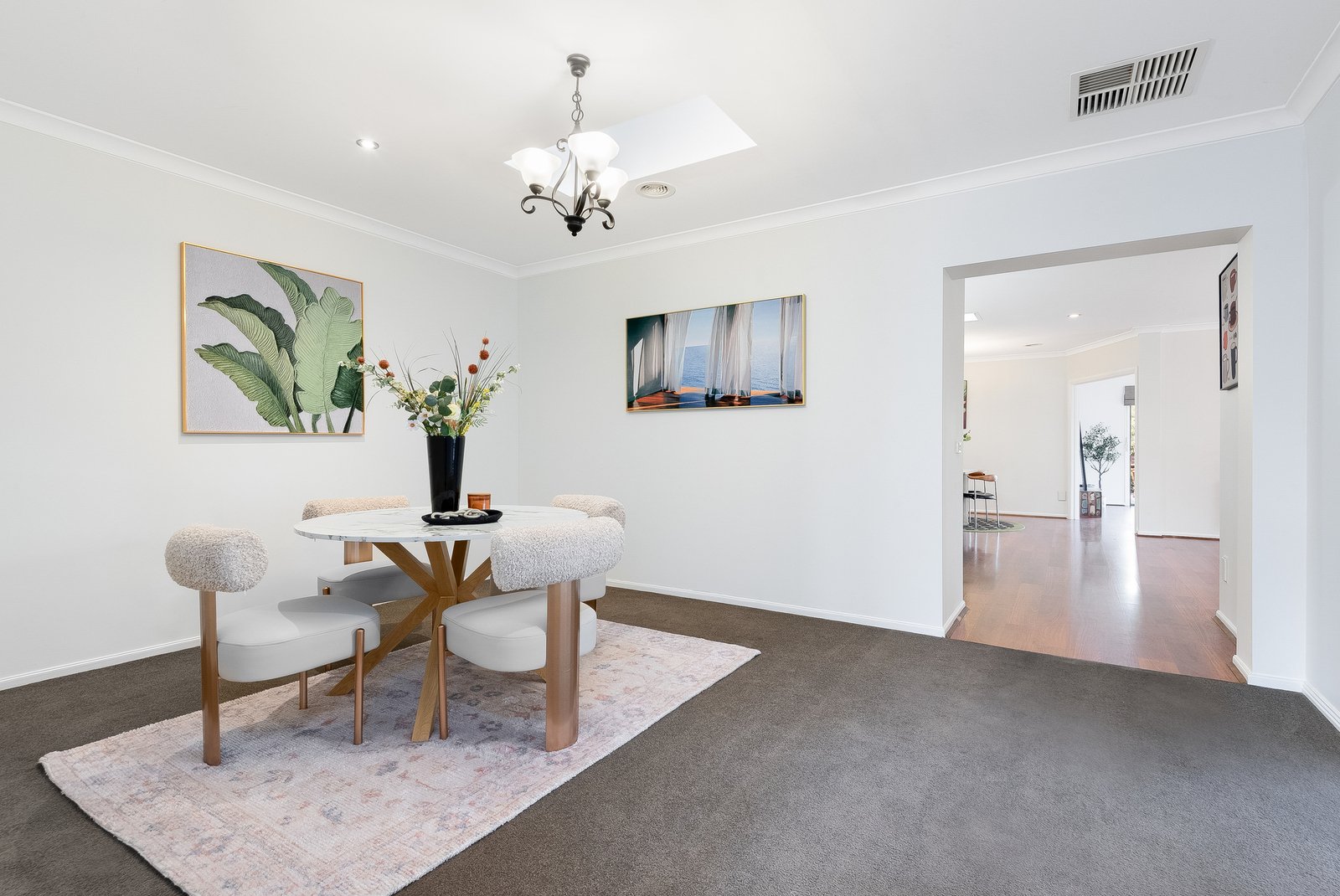 Neatly presented landscaped gardens and a classic contemporary façade will impress on arrival. From the entry, double doors open to the expansive main bedroom, offering a luxurious retreat with walk-through robes and ensuite with dual vanity, stone benchtops and double shower. Three additional bedrooms are zoned in a rear wing, all include built-in robes, serviced by a tastefully presented main bathroom and separate wc. A fifth bedroom or study allows you to tailor the space to suit your needs, be it a bedroom, home office, or guest room.