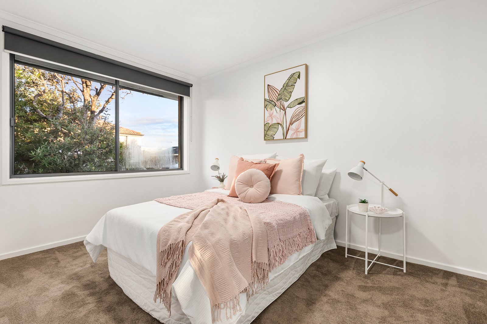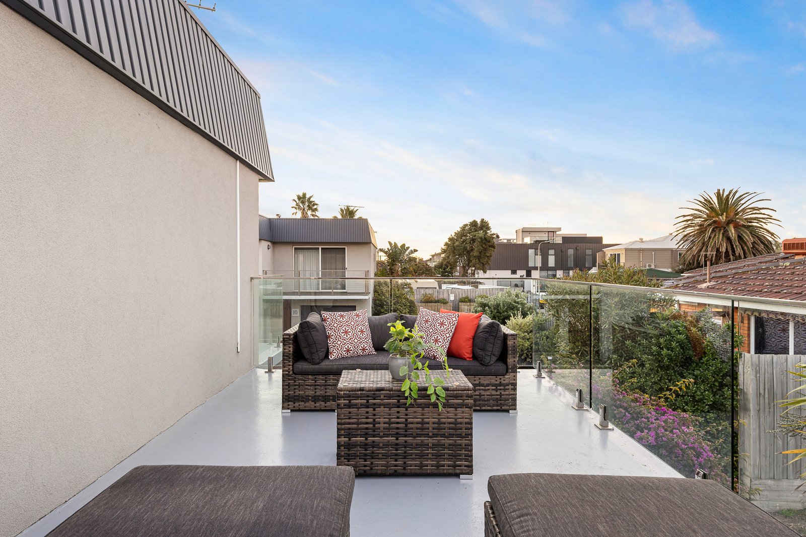 Enjoying private access to the pristine sand within footsteps and village vibrancy just around the corner, this three bedroom sanctuary offers an idyllic beachside lifestyle. Hidden within a serene coastal setting, behind its timeless façade lies a fresh, modern interior with an abundance of natural light throughout, a flexible floorplan to suit your lifestyle, incredible outdoor space and a double garage. Spacious living and dining is bright and airy, flowing to a contemporary kitchen which boasts a Kleenmaid cooktop and oven, an integrated dishwasher and fantastic storage. Residing upstairs are two robed bedrooms and a sleek fully-tiled rain shower bathroom, along with a second living space flowing to sea breeze balconies, or can alternatively be utilised as a third bedroom. The outdoor areas impress with enviable alfresco space, the huge garden courtyard and covered deck are private and sheltered – ideal for kids, pets and those who enjoy entertaining, while you’ll love to relax on the large upper-level terrace and balcony bathed in northern sunshine. Further highlights include timber-style flooring, laundry room with second toilet, split-systems, double roller blinds, under-stair storage, a garden shed, double remote garage with rear roller and ample visitor parking. With the natural beauty of the bay at your doorstep, and Edithvale’s relaxed café scene, shops, the lifesaving club and the train station within approximately 300 metres – the lifestyle convenience is outstanding. Edithvale Primary School, bus stops, golf courses, sports reserves and freeways are also within easy reach.