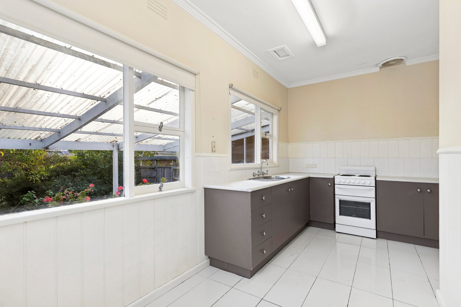 A picket fence and classic mid-century façade present an enchanting appeal on arrival. Porch entry leads to an open plan dining and living area with polished timber floors, original mantel, and a picturesque garden outlook. The adjoining kitchen features modern cabinetry, a 600mm freestanding oven and cooktop, and the perfect vantage point to oversee the kids or pets at play in the backyard. Three bedrooms are generous in size, two include built-in robes, all serviced by a family bathroom with bath, separate shower, and pedestal basin.