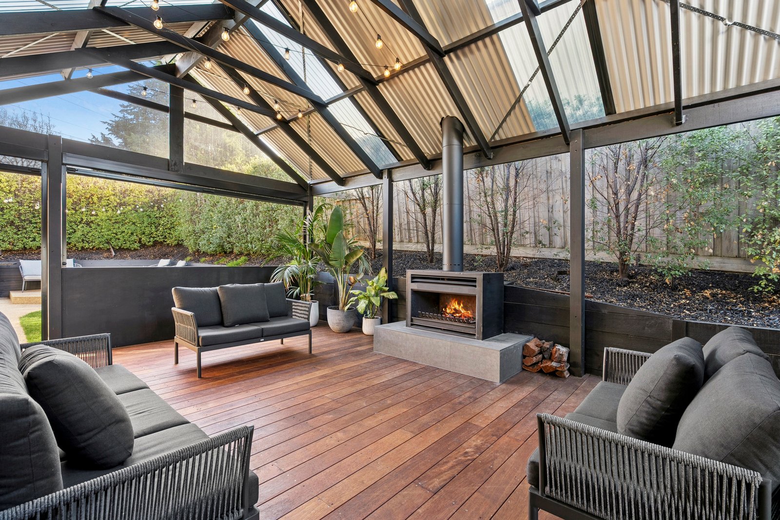 Outside, the expansive undercover alfresco features a magnificent open fireplace and outdoor blinds, offering an impressive space to host family and friends all year round. A secure lawn for the kids or pets to play is designed for low maintenance upkeep, with a paved firepit area and lush surrounding hedges completing the ultimate outdoor entertaining space. The double remote garage includes direct internal entry, plus access to the alfresco for fantastic functionality.
