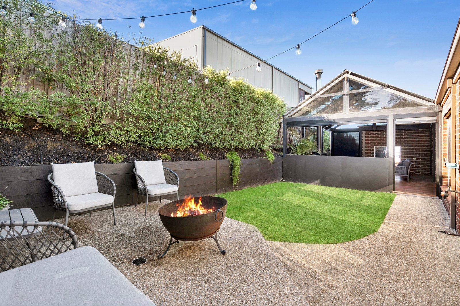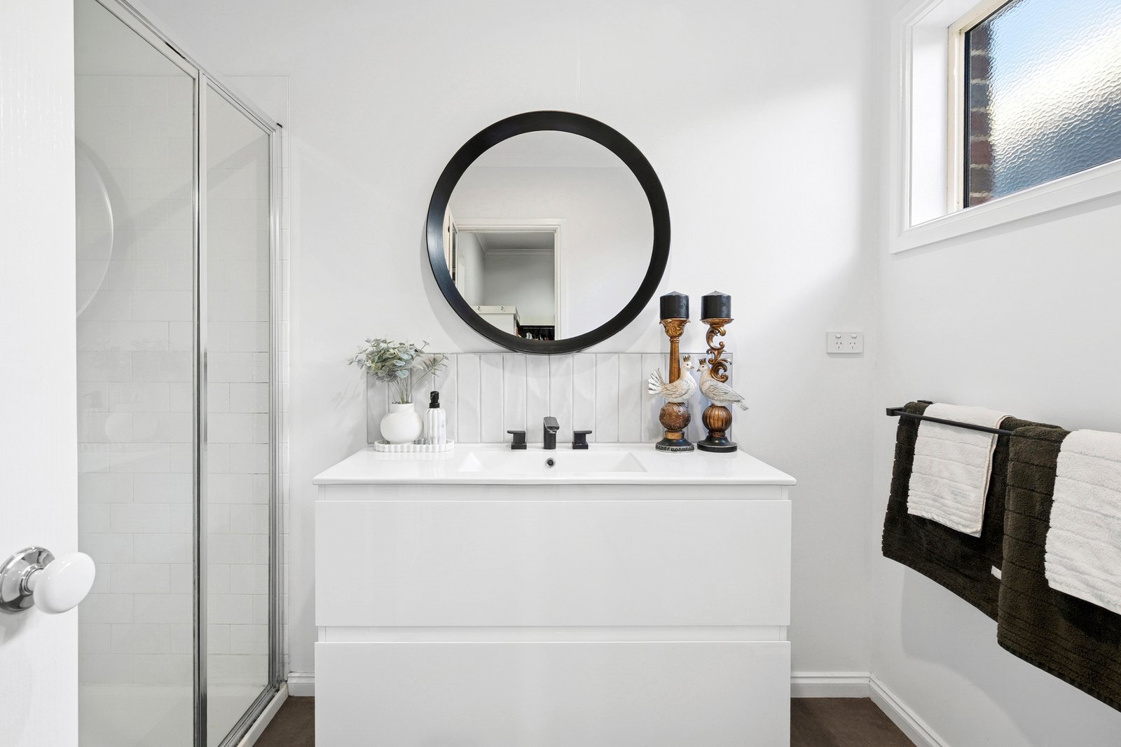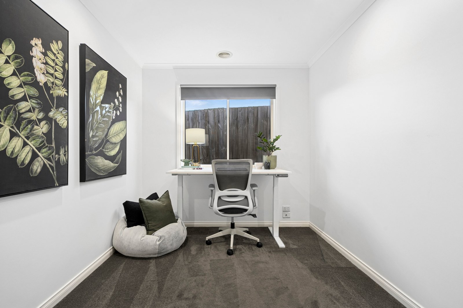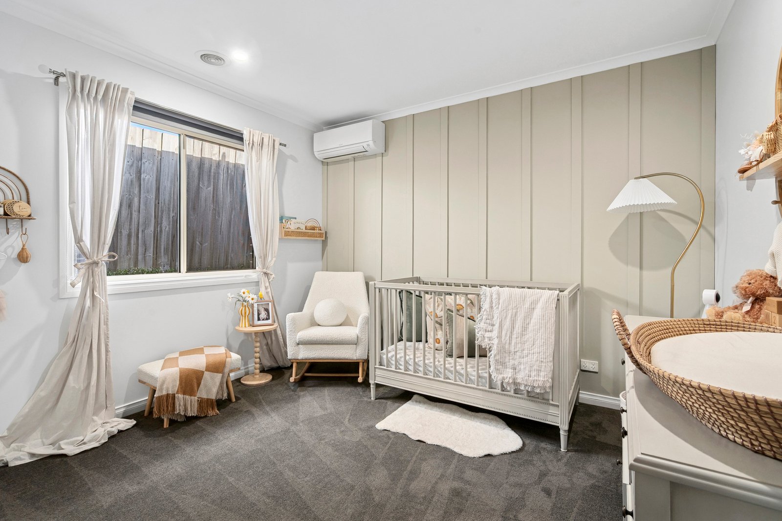The main bedroom is privately zoned at the rear of the home, featuring walk-in robes, a tastefully presented ensuite, and direct access to a north facing sunroom. Three additional bedrooms in a separate wing all include built-in robes, accompanied by a contemporary main bathroom, separate powder room, and a study providing a quiet space to work from home. All bedrooms include individual split system heating and cooling for personalised climate control.