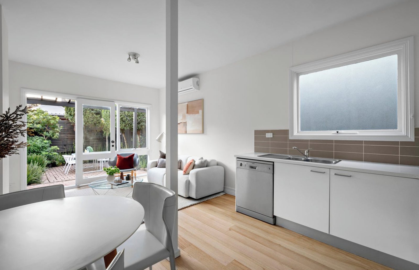 Inside, you’ll find spacious bedrooms, a bright and airy living and dining area, and a modern kitchen with gas cooking, all blending period character with everyday convenience. The home’s classic appeal is complemented by its unbeatable location — within walking distance to Clarendon Street, South Melbourne Market, Melbourne Sports and Aquatic Centre, St Kilda Road trams, Shrine of Remembrance, Beach & Arts Precinct.