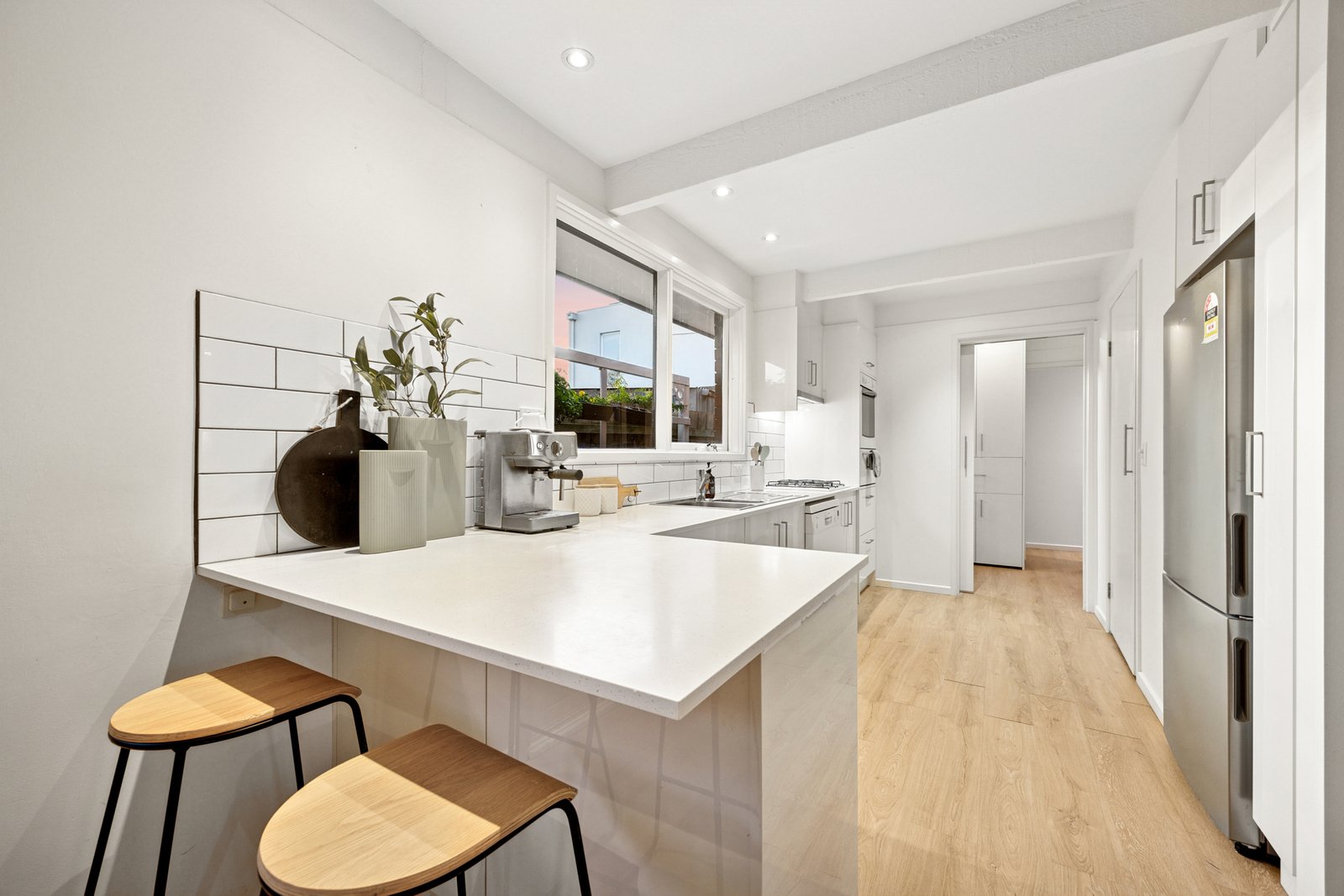 Impressing with interiors that seamlessly blend original features – including exposed beamed ceilings and warm timber accents – with contemporary updates such as wide-board floors and open-plan living – the two-storey home is a setting of warmth, sophistication and modern style. Included are a huge living/dining zone, a crisp white kitchen - with stone benchtops, walk-in pantry & quality appliances - plus a rear garden-view family room with direct access to the expansive child & pet-friendly garden and outdoor entertaining area.