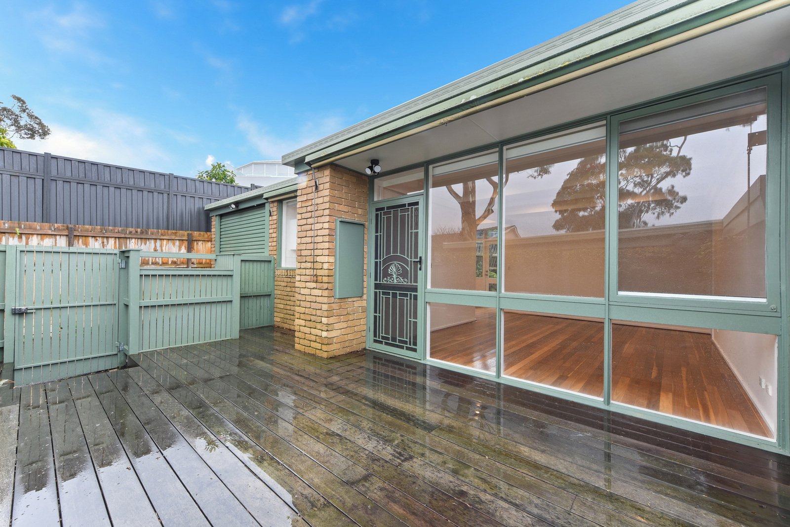 • Front courtyard featuring deck