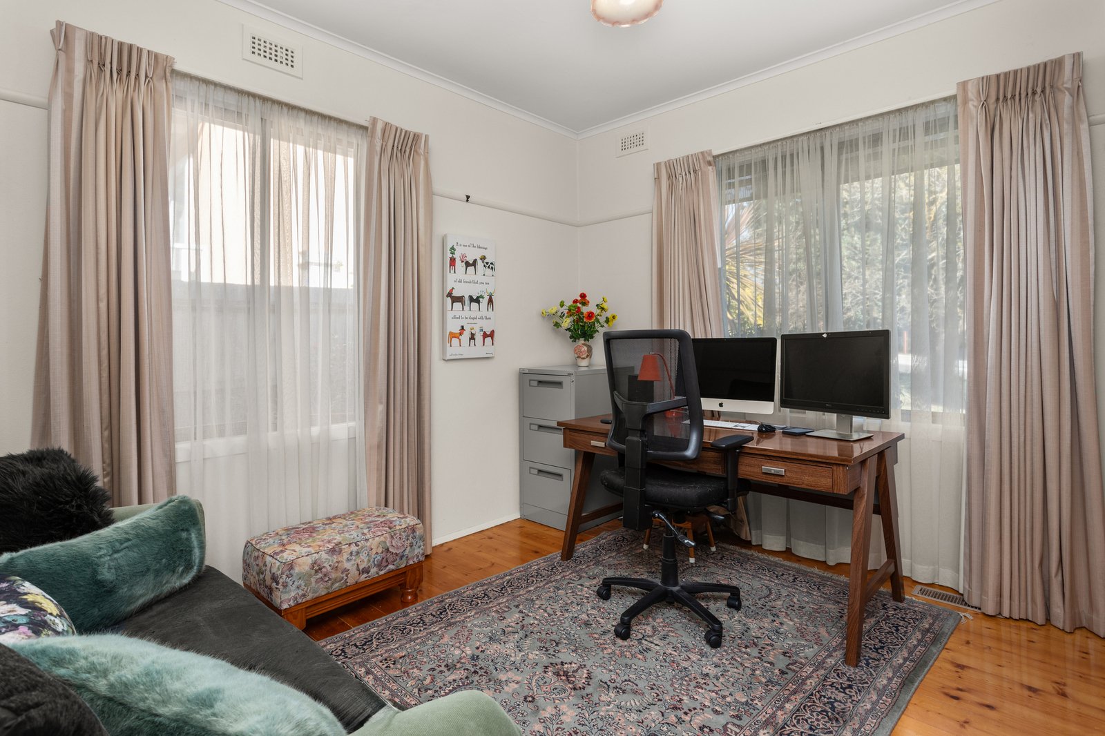 Nestled on a generous 662sqm (approx.) allotment with a wide frontage, this meticulously updated residence seamlessly blends modern comfort with timeless charm. The home features two spacious bedrooms, with the master suite boasting a walk-in robe and a private ensuite, offering a luxurious retreat. The heart of the home boasts a renovated kitchen featuring an induction cooktop, electric oven, and integrated dishwasher, catering to contemporary culinary needs. The spacious lounge room is enhanced by a cozy gas log fireplace, while the dining area and main bedroom are equipped with split-system air conditioning for year-round comfort. Gas ducted heating and evaporative cooling further ensure a pleasant indoor climate throughout the seasons.