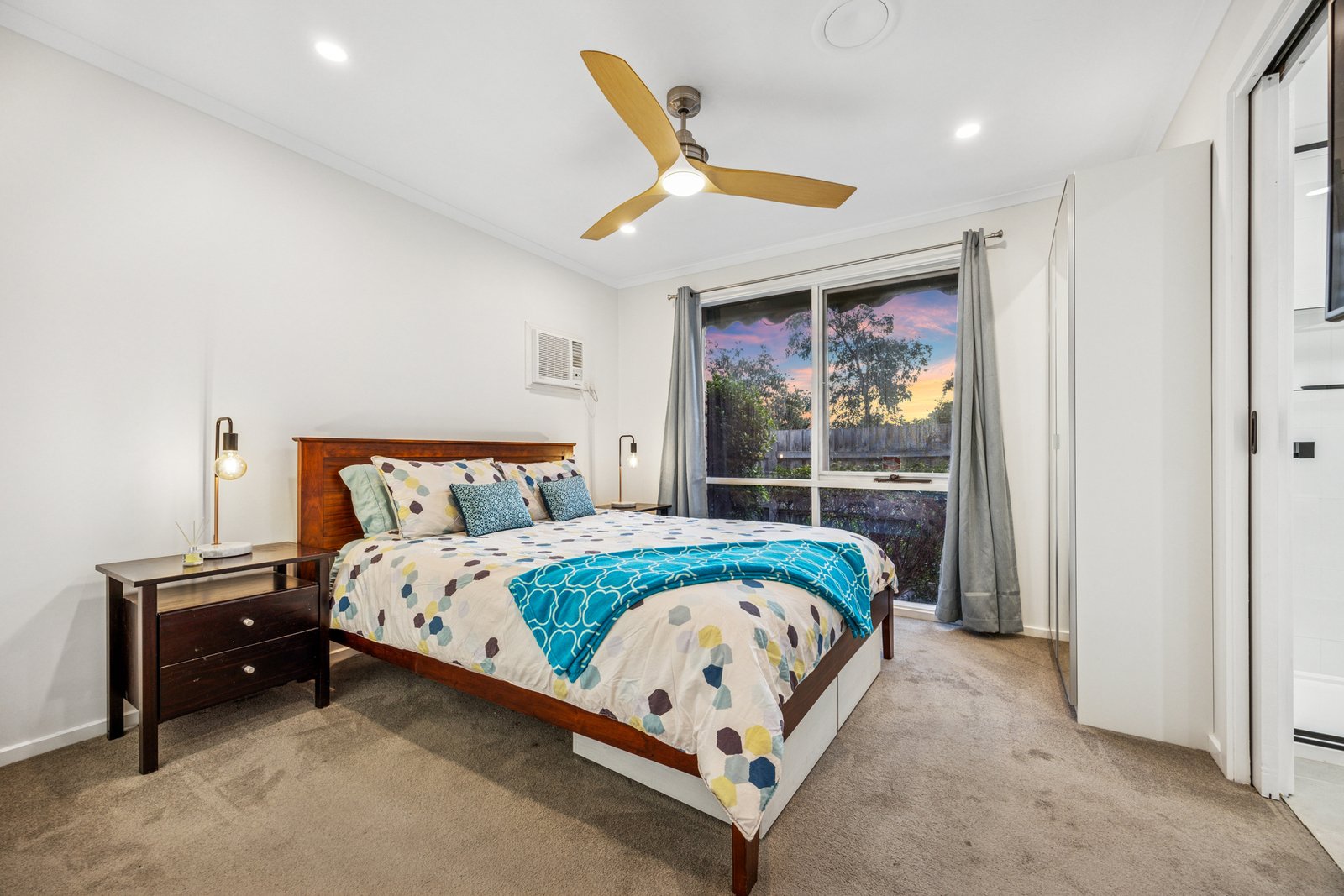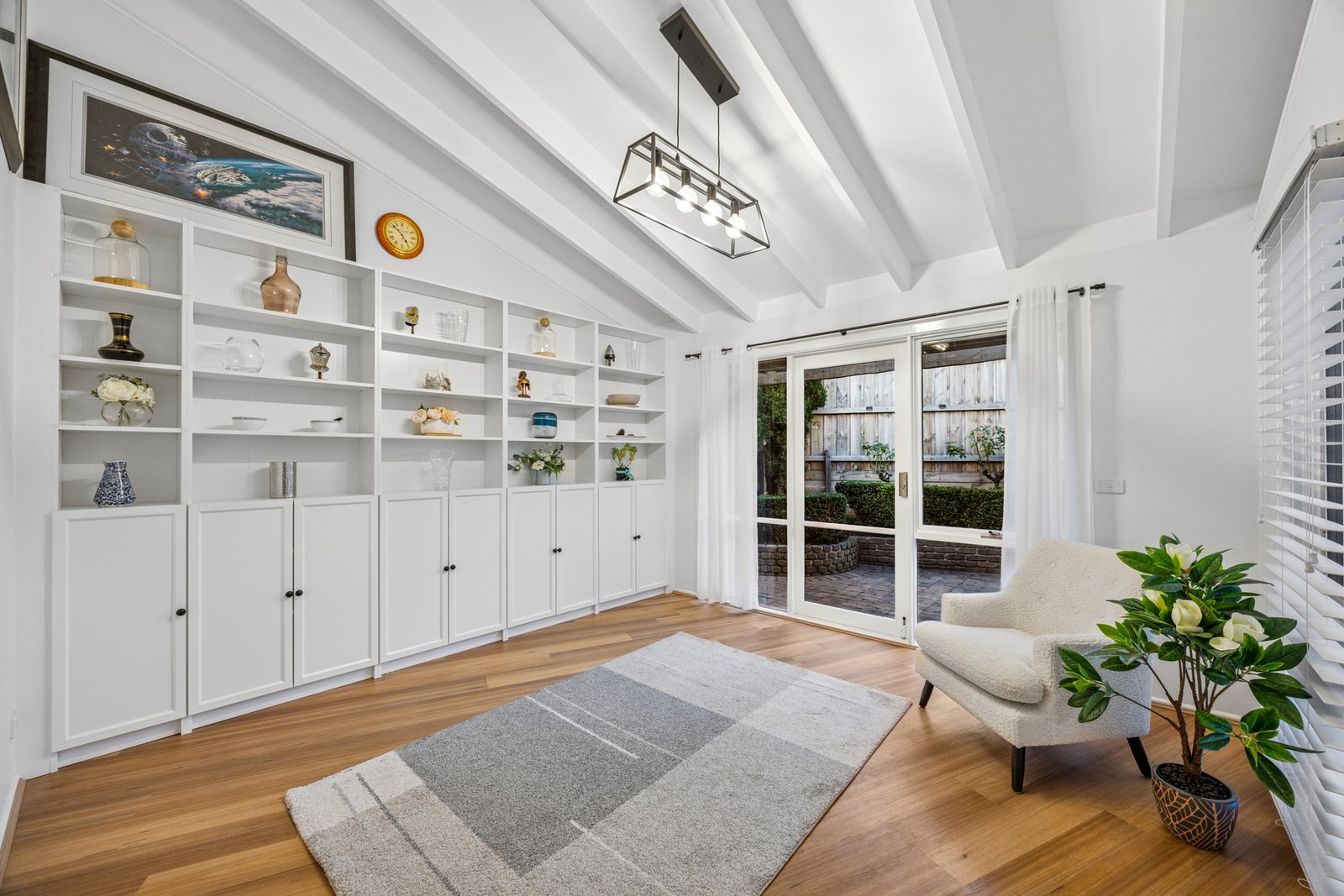 Featuring custom cabinetry including tall built-in robes, home-office shelving for the flexible fourth bedroom and library-cabinetry for the quiet living area, this well-appointed home has individual reverse-cycle air-conditioning and ceiling fans for almost every room.