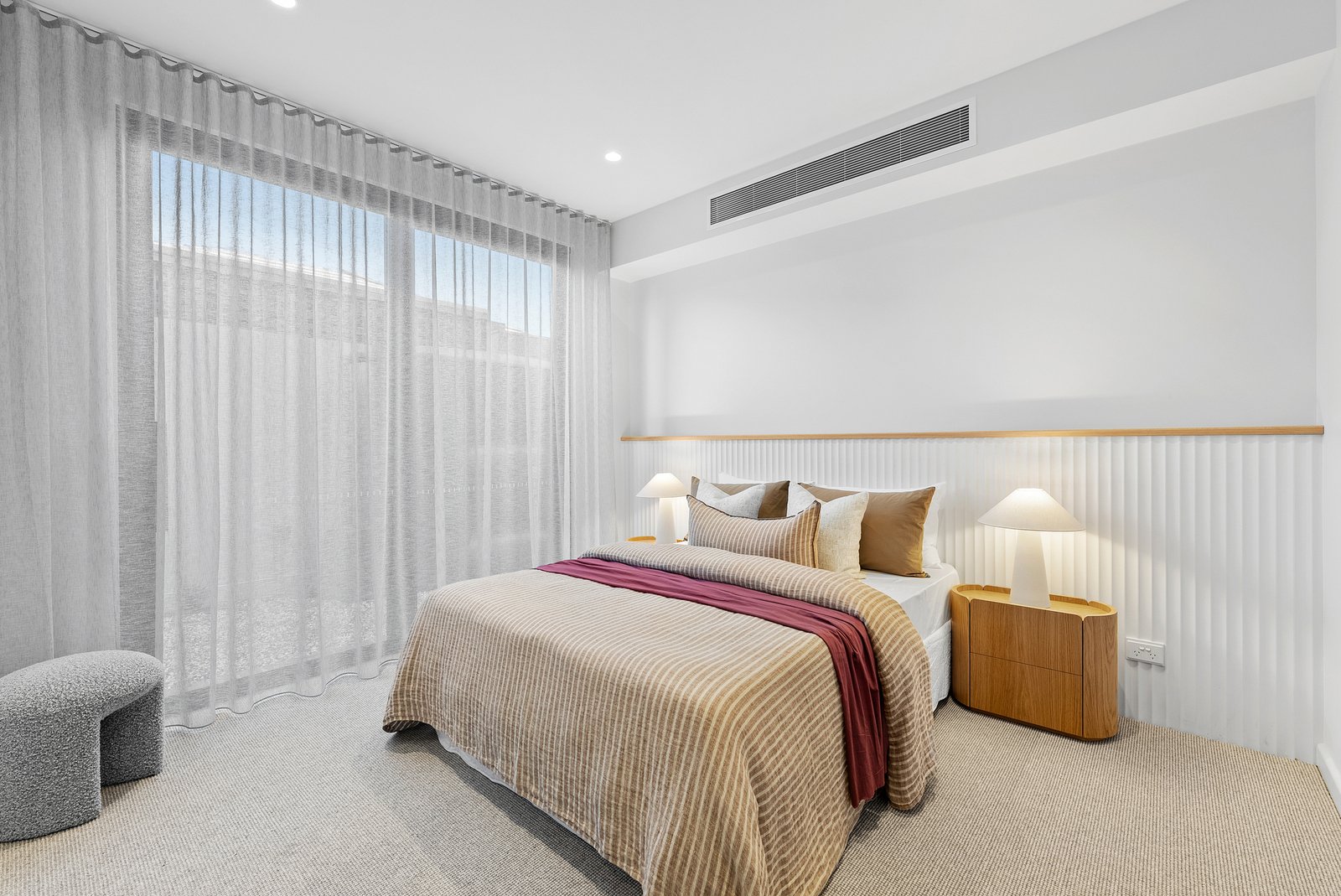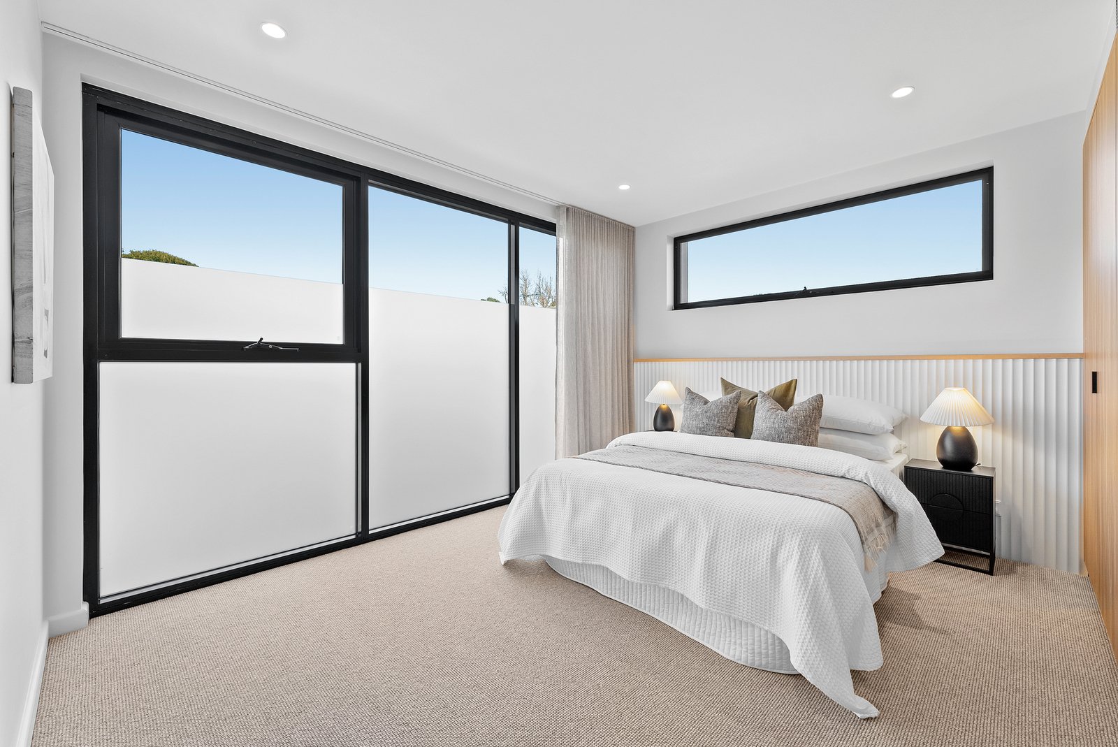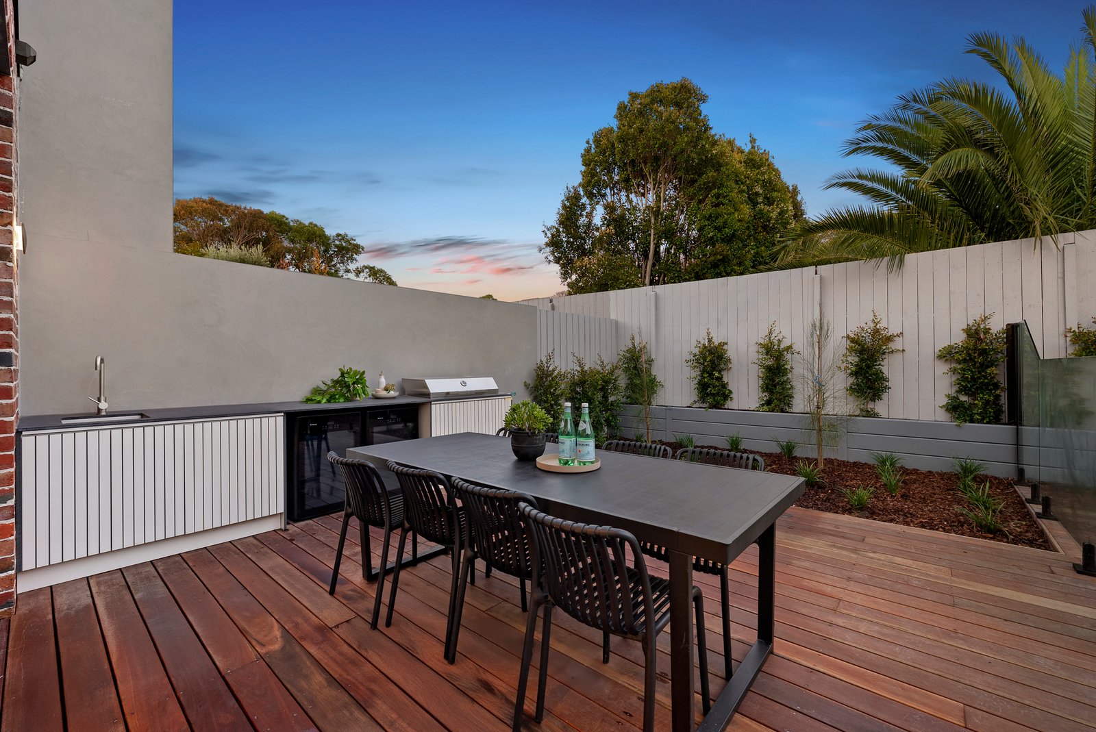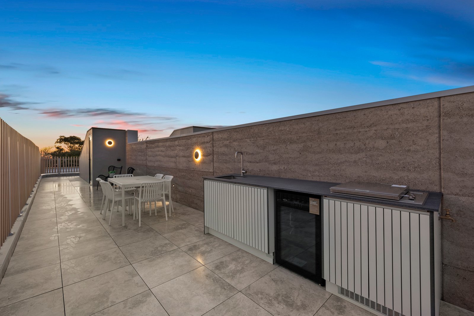 Above it all, the rooftop terrace unveils sweeping views across the neighbourhood to the bay, creating a sublime stage for exquisite entertaining. Complete with a built-in Artusi BBQ and bar fridge, the space welcomes lively gatherings amid unforgettable sunsets.