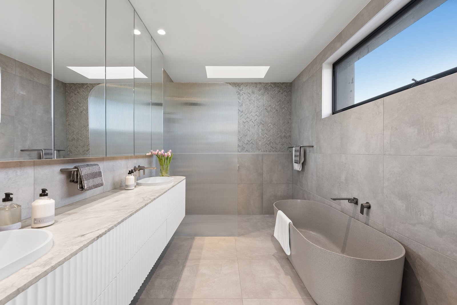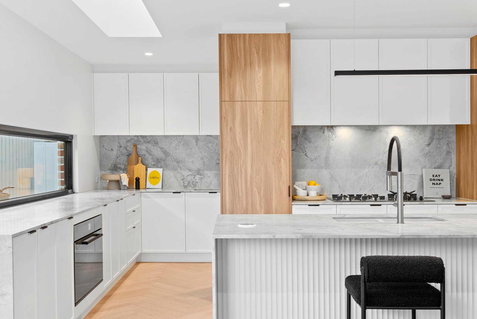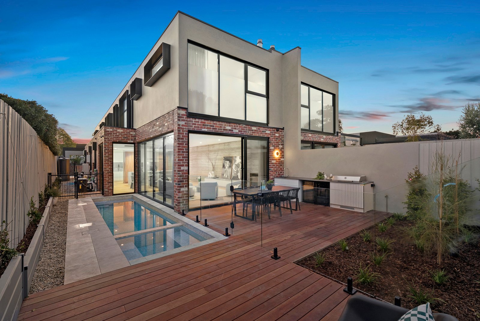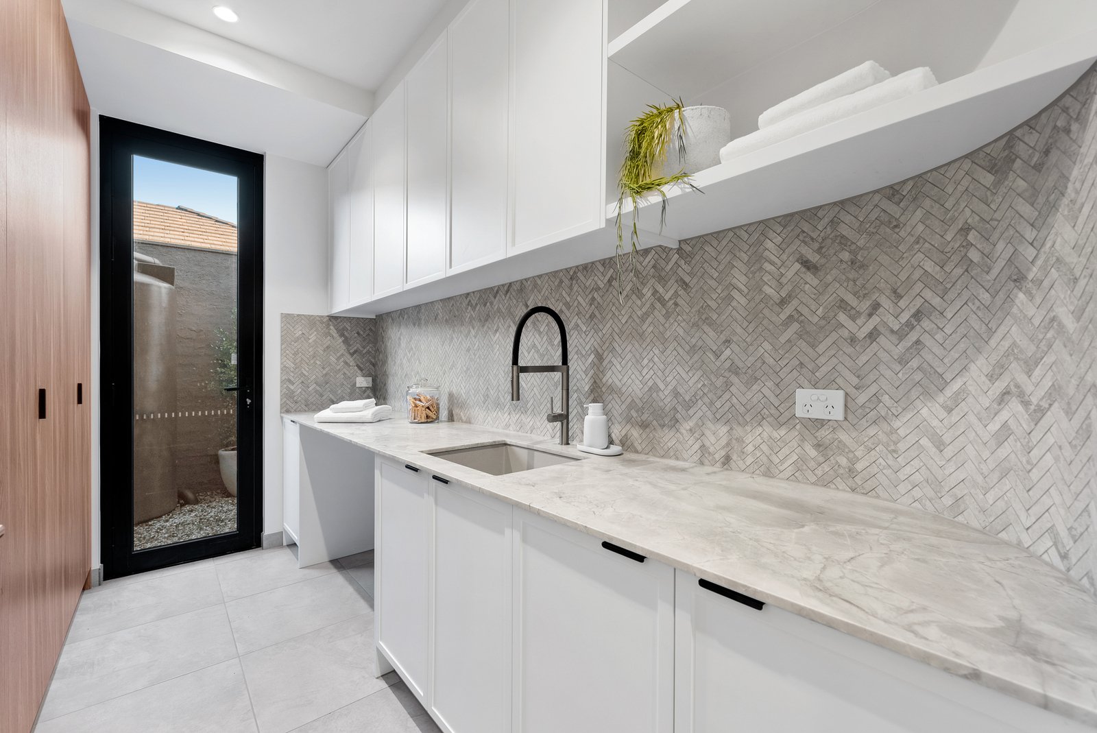 Above it all, the rooftop terrace unveils sweeping views across the neighbourhood to the bay, creating a sublime stage for exquisite entertaining. Complete with a built-in Artusi BBQ and bar fridge, the space welcomes lively gatherings amid unforgettable sunsets.