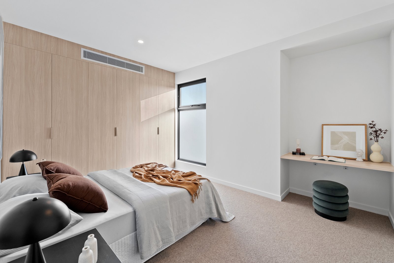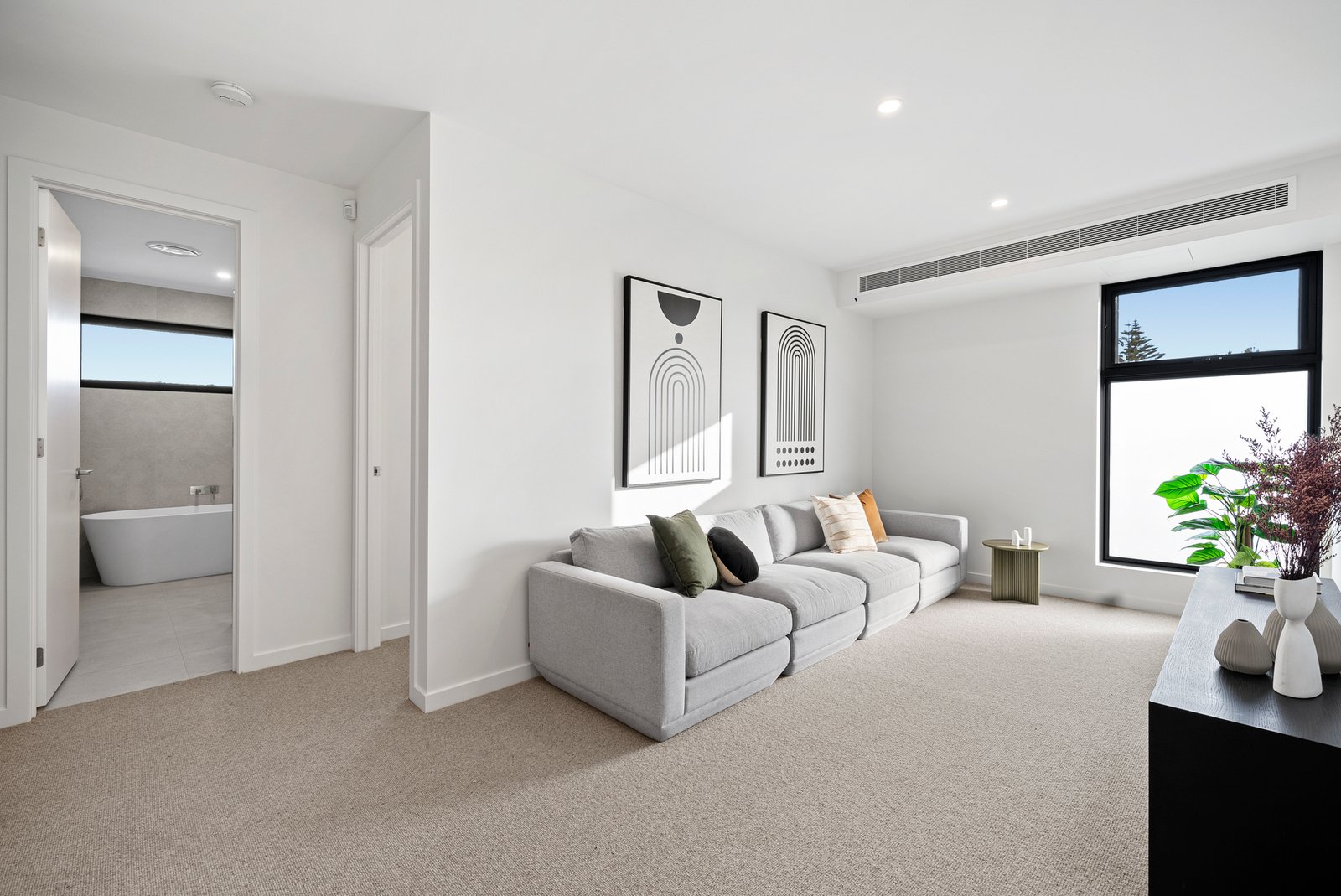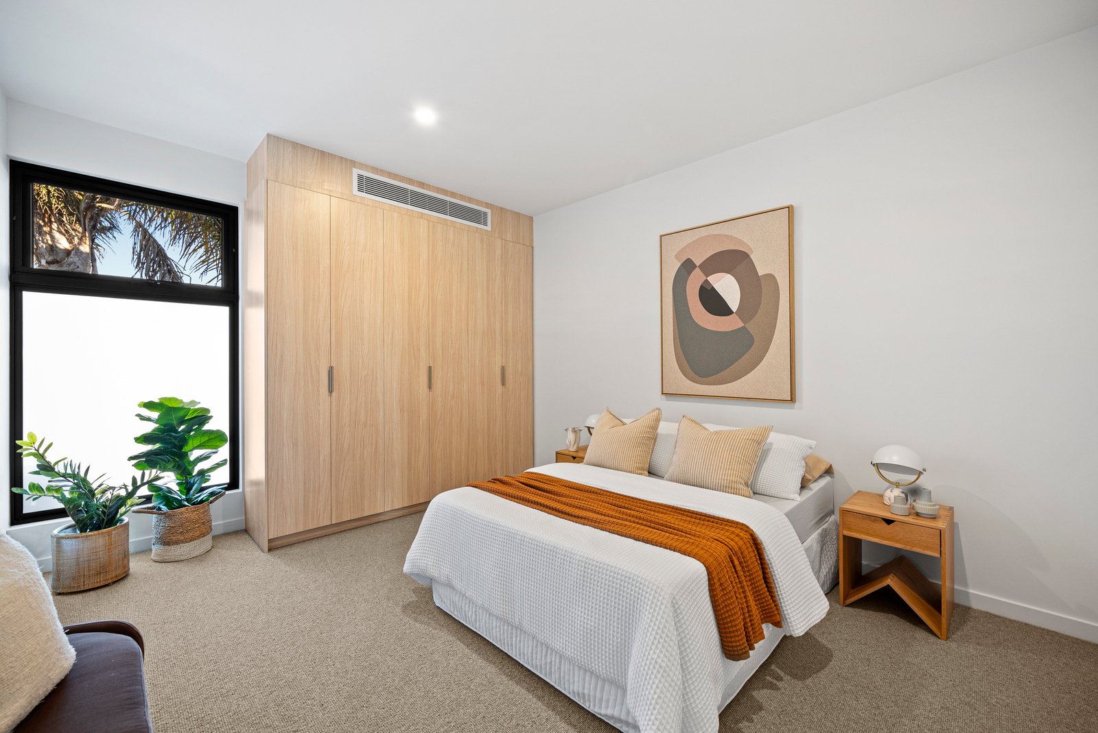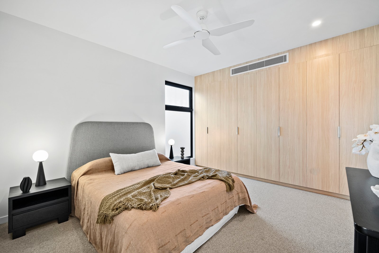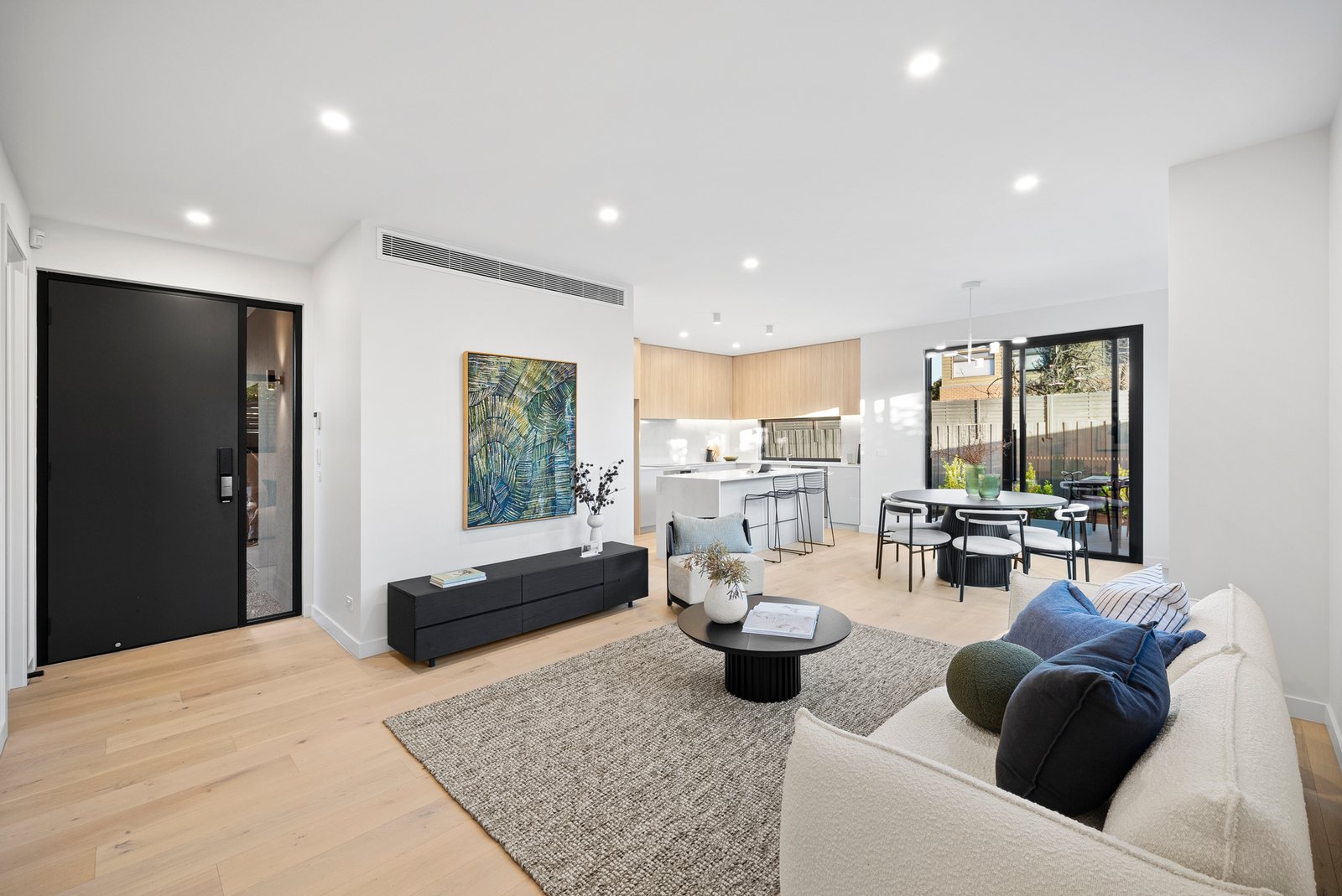 Curated with the sleekest stone benchtops, light Oak floors, and the latest loop-pile carpet, this climate-controlled home includes reverse bulkhead AC units in every living room and bedroom. Security and ease are paramount with an alarm, Samsung keyless entry, a double auto-garage, and a car turntable for effortless vehicle access.
