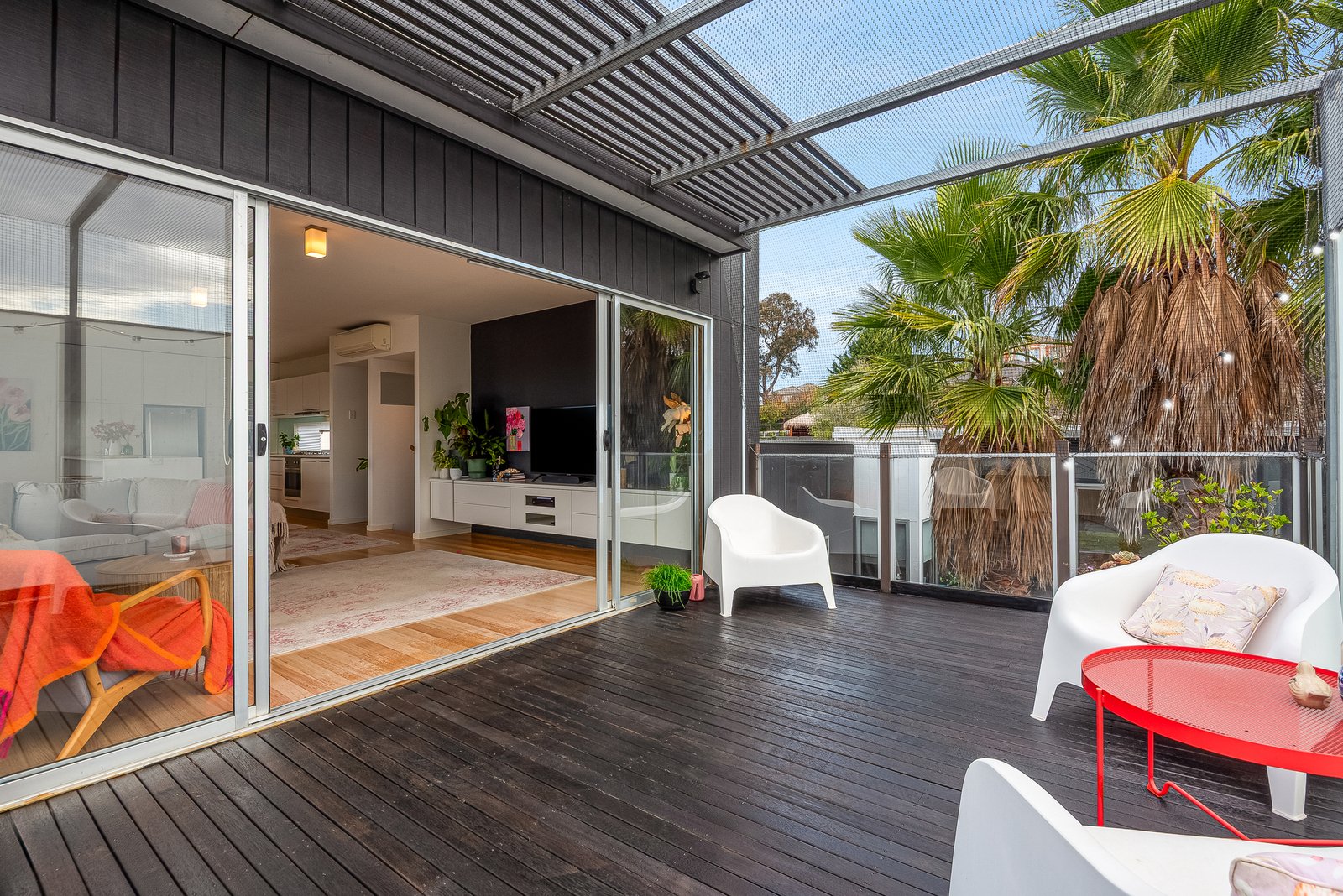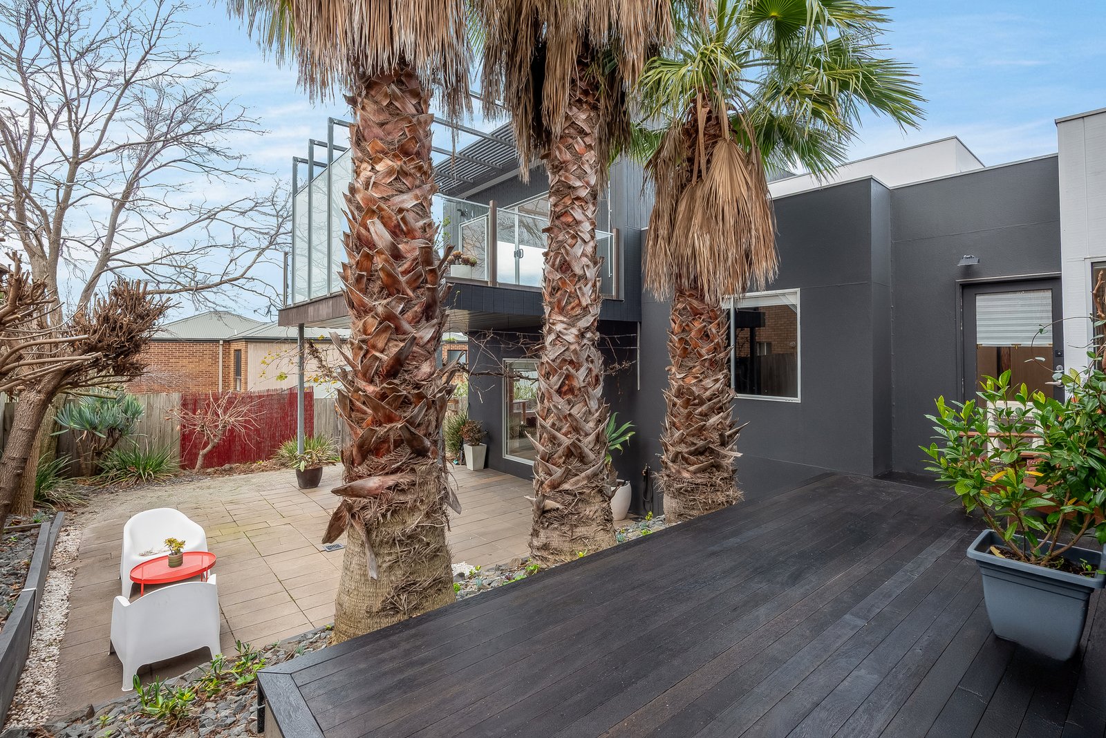 Set in a leafy cul de sac, the contemporary façade is sophisticated in style. Inside, light interiors, Tasmanian Oak floors, clean lines and high ceilings create an inviting atmosphere throughout. Off the entry, the main bedroom is a private retreat, with direct access to a secluded deck, walk through robes, and a tastefully presented ensuite. Three additional bedrooms include built-in robes, serviced by a stylish main bathroom with double vanity, and a separate powder room. A fifth bedroom or study provides a versatile space for a guest room or home office.