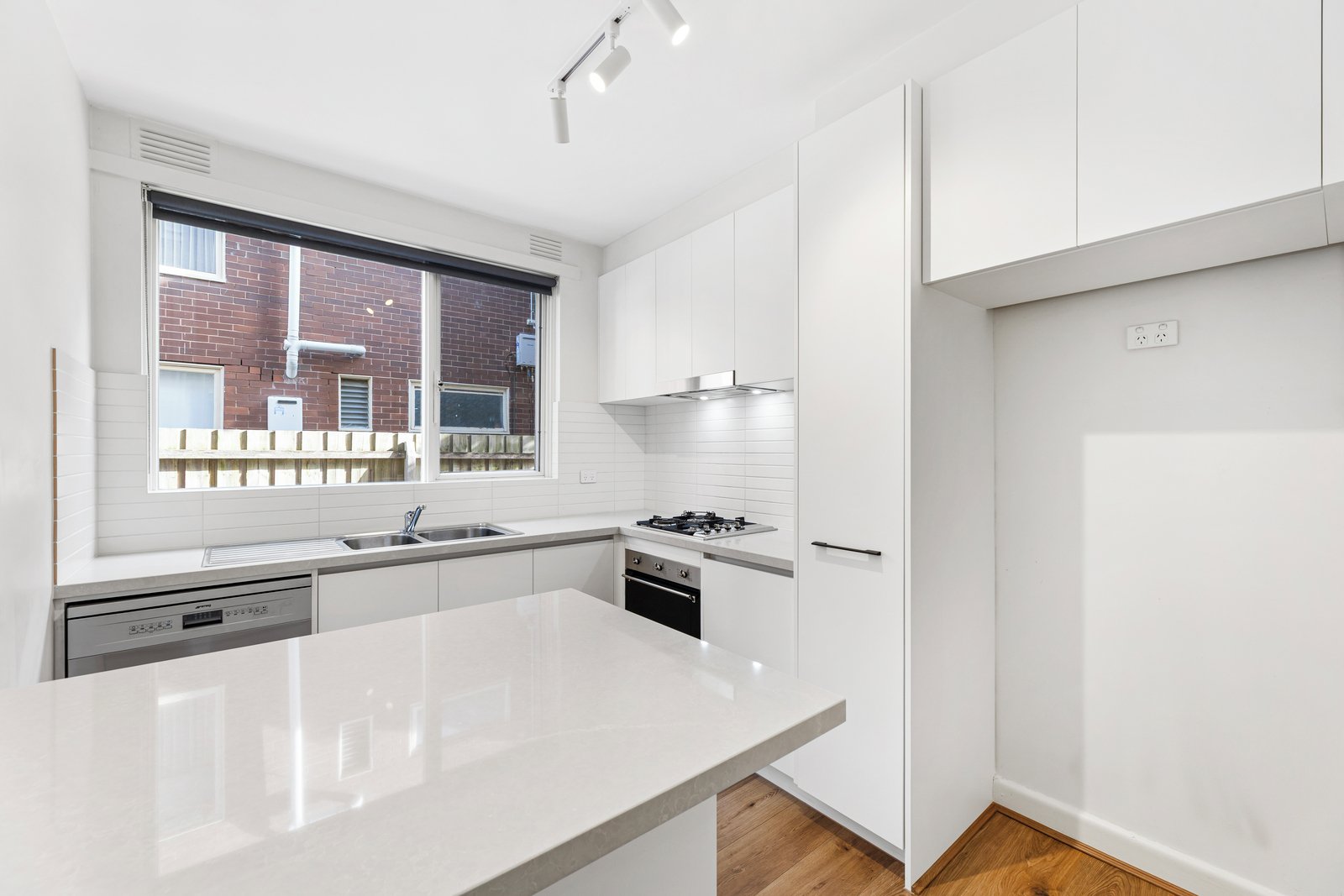 Step inside to discover a generous, light-filled living area flowing effortlessly through to the stunning kitchen – complete with a sleek island bench, quality finishes including stone benchtops, gas cooking and dishwasher. Both bedrooms are well-sized and boast exceptional built-in robes, offering fantastic storage without compromising space. Spit system ease in living and main bedroom.